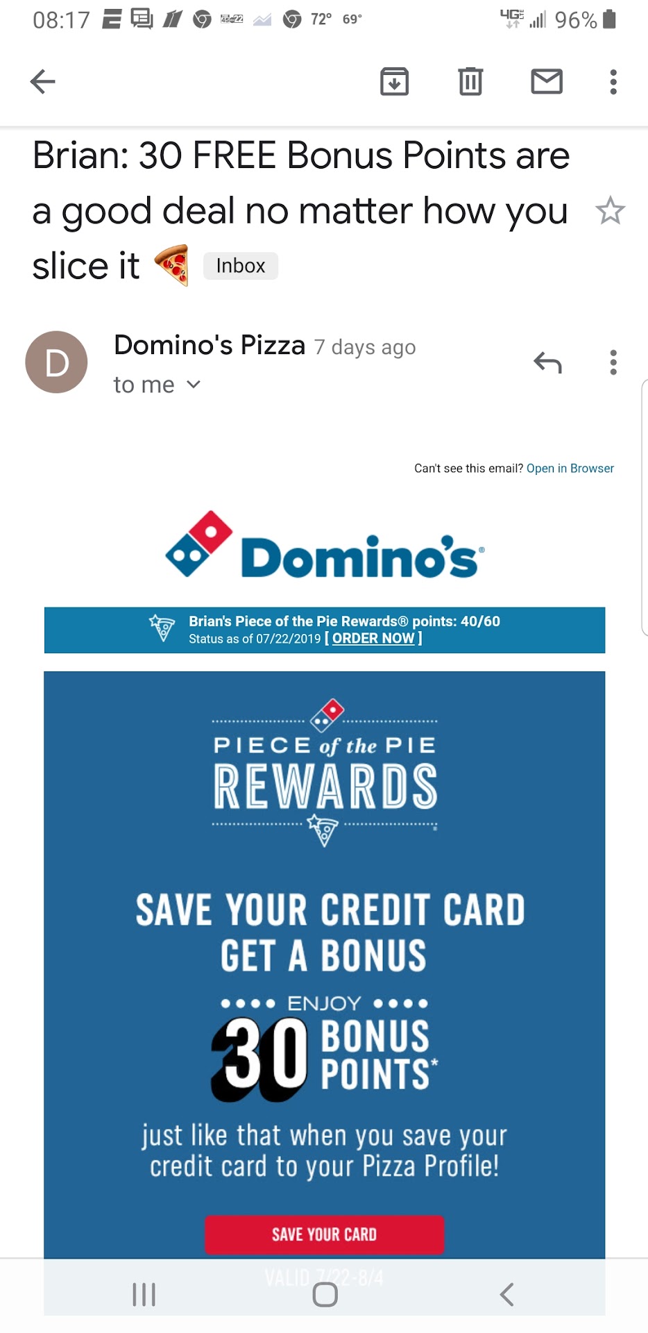 Read moreI eat sadly Atleast 3 times a week there lol I am a regular, AS A PREVIOUS MANAGER AT A DIFFERENT DOMINOS it’s crazy that they give me half my pasta weight almost overtime. EVERYTHING is to be weighed. 8 times out of 10 I get my pasta and can see the bowls bottoms and NEVER the right amount of Alfredo sauce always dry unless I call and complain and get a new one then they do it right. I hate to call And be a bother BUT ITS THE ONLY WAY THEY MAKE IT RIGHT so I never end up being satisfied because I hate to have to do it EVERYTIME because then they will think it’s me . I just want to get the same quality pasta every-time. Other than that the staff is very nice and respectful and are always willing to fix the mistake. It’s...