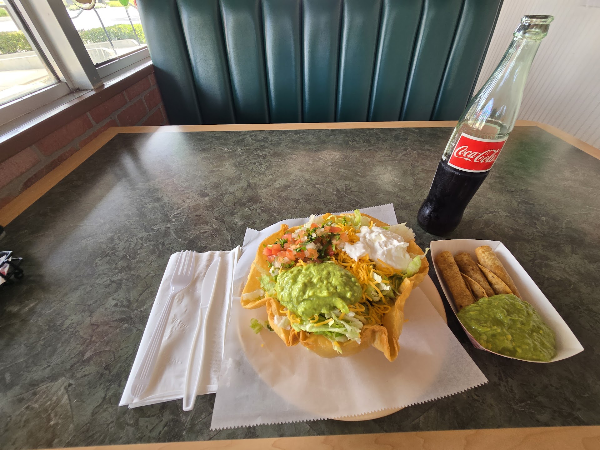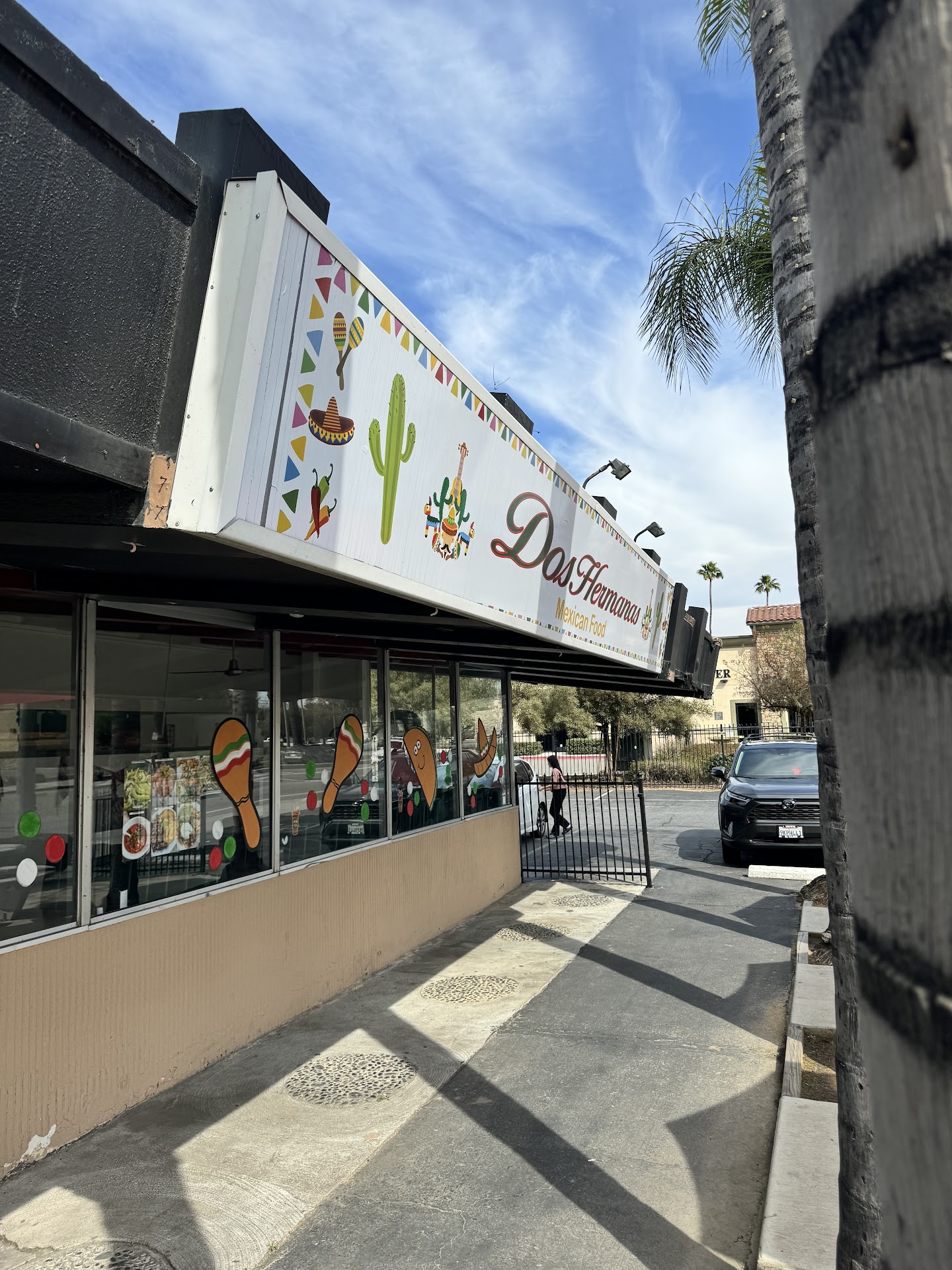 Read moreThis restaurant may be located in a building converted from a former tenant because the seating area wraps around the kitchen on two sides. There are three tables of outside seating with umbrellas, as well. I ate an early dinner here on a Sunday -- my first visit. I chose the Taco Salad ($11.75) with carne asada, Chicken Taquitos [3] with included guacamole ($5.75), and a Mexican Coke ($3.00). Everything was really tasty. The taquitos may have been pre-made but they were freshly fried. The taco salad was served in a pre-fried shell but was heaping with refried beans, rice, crisp lettuce, pico de gallo, guacamole, and sour cream. There was no cheese on the salad. It was clear to me that these items were fresh and made with quality ingredients. Unfortunately, only plastic utensils are available, even when dining in. The cashier was courteous, knowledgeable, and spoke English. The booths were comfortable and in good repair. The floors and windows were clean. The restroom was also clean and well de-odorized, although there was some graffiti on one wall (which had clearly been painted many times to obliterate previous vandalism). I always read previous reviews before choosing a new (to me) restaurant. I often pay particular attention to Zero and One Star reviews to get the whole picture. I found such evaluations for this establishment especially petty and non-relevant. Overall, I found nothing wrong with this restaurant, especially at these price points. Dos Hermanos is...