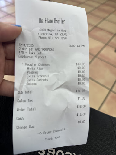 Read morewent a couple weeks ago and used to go often but last time had such a horrible experience. my son wanted to get food so we stopped by and apparently the payment machine sometimes has problems with certain cards. the guy said it's not taking your card it's saying 'ap due', I asked what that meant and he says I don't know but it's not taking it, ended up at Carl's Jr next door card was fine, called my bank and the charge had gone through with flame broiler. bank tells me to call them because it's sounds fishy said I should be careful with them. had to talk to Linda the 'owner' and she told me to wait a week for the refund, she said the machine sometimes acts up. I will not be returning. they lost...