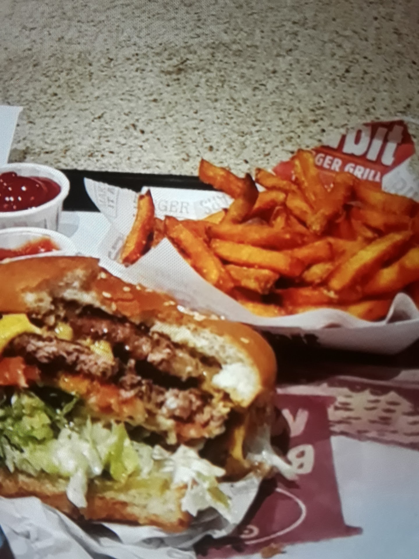 Placed an online order for ASAP pickup, ordered at 11:49a, food supposed to be ready at 11:59. My wife goes to pick up the food maybe 15 mins after the order was placed, she shows up and the food was not in the pick up area. Come to find out it had been "moved." The person that moved it was on lunch/break and the individual(s) working the front were unaware of the situation. Why move the food at all??? My wife arrived within a reasonable time after the order was supposed to be ready. So after a bunch of back and forth, my wife has been there now almost 20 minutes since the store is also busy from the lunch rush. Our food is "found", now cold and soggy at this point. And she is sent on her merry way. We get the food home almost 30 mins after it was ready, everything needs a reheat, burgers are cold and soggy, not worth $30 at all. To top it off as I'm taking a bite of my burger, I find a short greyish/black hair in my burger as the icing on the cake. I don't mean to review this place so harshly but l have a distinct feeling someone was trying to squirrel our order away for a break time snack claiming that it wasn't picked up quickly enough. Everything should have been remade after having been unable to "find" it. And frankly I'd like my $30 back for huge pain in the a** and having received cold, soggy,...