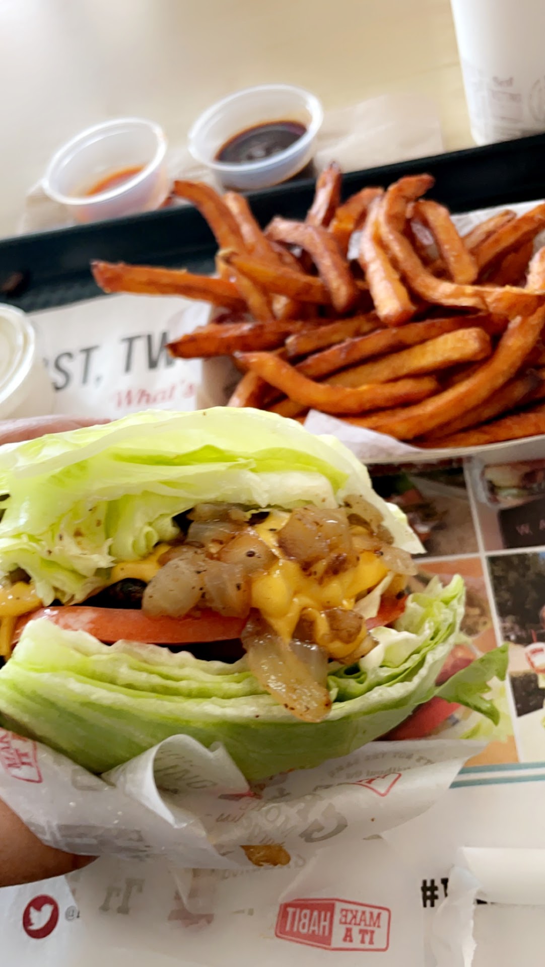 Read moreNice place, nice mall, family experience. I think this is a very nice resteraunt, in a quaint little street mall, many more resteraunt and bistros, grills and bbq, etc to choose from but this burger house is nicely placed to view a sunset or just take a romantic walk after dinner or coffee, can be avery romantic experience. This resteraunt does have clean restrooms. CON: Saturday nite 7 pm sunset w/my family walked around looking at many other resteraunts, decided on the habit burger, entered pictures of mouth watering burgers, melting American cheese, caramelized onions, manager says no American cheese, "swiss only" Sorry that's not cheese, "well that's it" he says, that or nothing, wow the busiest nite of week prime dinner hour out of cheese, There was a burger resteraunt across street with no problems, manager couldn't send someone on a mission for cheese, $40 later the worst burger in riverside, McDonald's would never run out of cheese, If you don't have cheese why open the doors. A burger joint without the ingredients for there only product they serve, is a joke !!! Management should never run out of it primary ingredients. I expected more...