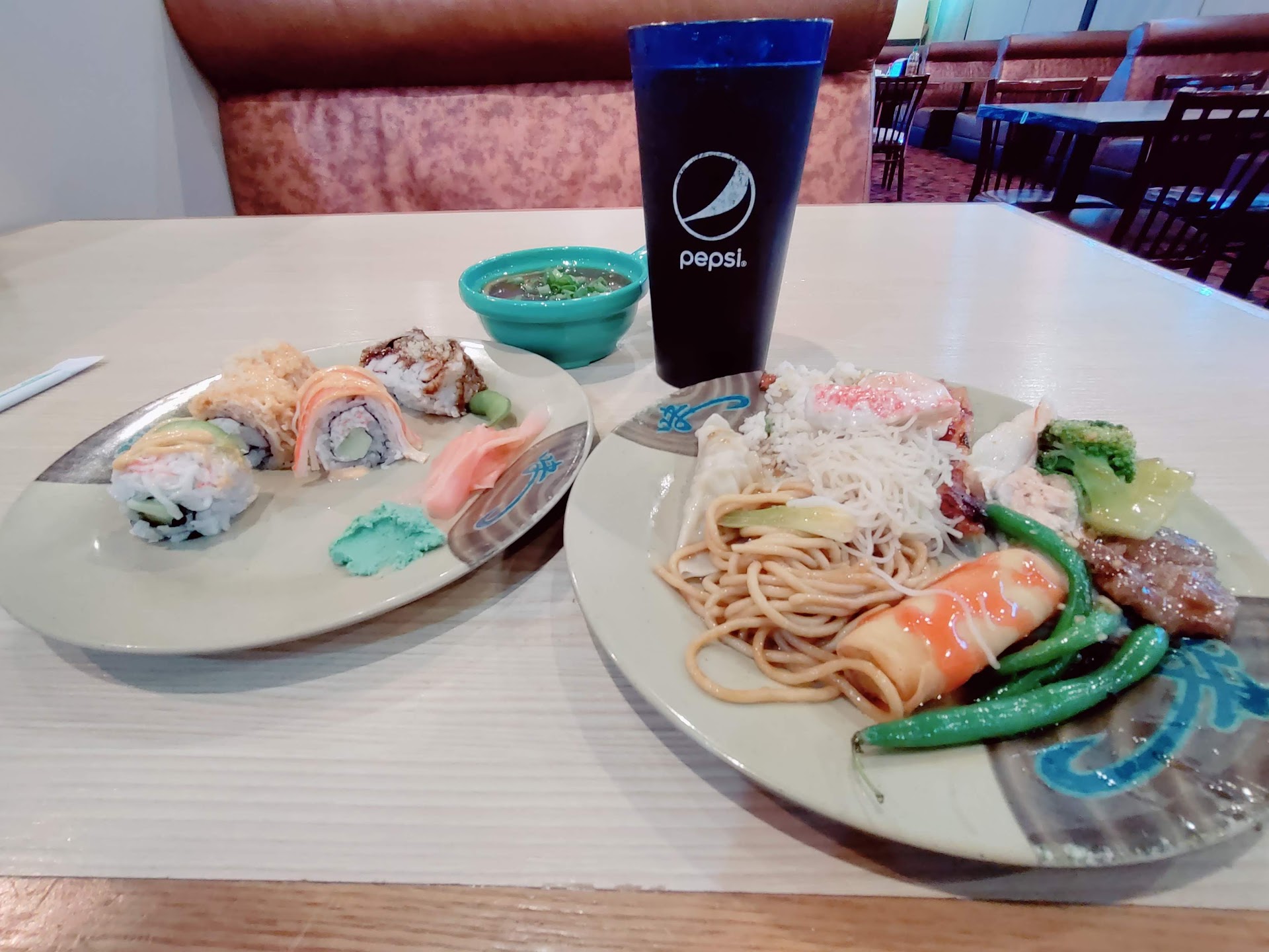 Secondly, I need to point out the negative experiences. The sushi was overly bland and there was little distinction between the different rolls. Several of the items were cold. Having over 25 years in the restaurant business, it was easy to tell why. The food was being served in plastic bins on the steam table. The plastic bins are for refrigerator storage and the metal bins are to be used for heated food to remain hot on the steam table...that being said it seems that they just took the food out of the refrigerator and placed it on the steam table hoping to warm it up. To me that alone made any score above a three impossible.