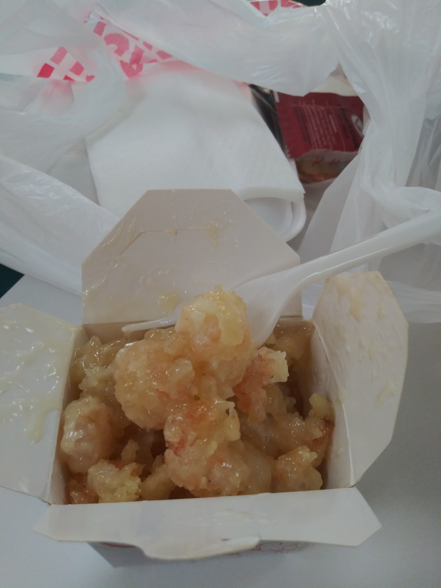 It has been a very long time since I've been here (due to moving out of the area) but was in the area and looking for dinner and remembered this place. I don't know if it is even owned by the same people, but figured it was still there so who not. I was pleasantly surprised by the choices they have because it wasn't all the same. I got orange chicken, which was typical and pretty good, bbq pork which was good, although a little fatty, and spicy fish, which was really good. You don't normally see fish on a menu other than shrimp. They also have coconut shrimp for a dollar extra and it looked good. Maybe I'll try it next time. I got some egg rolls too which were typical as well. They have Thai tea which I didn't get but maybe next time. The noodles were ok but a little bland but the fried rice was good. I spent like $15 for a 3 item and 2 egg rolls which isn't too bad. I got a lot of food and had plenty of leftovers. I will go back next time I'm in the area and want...
