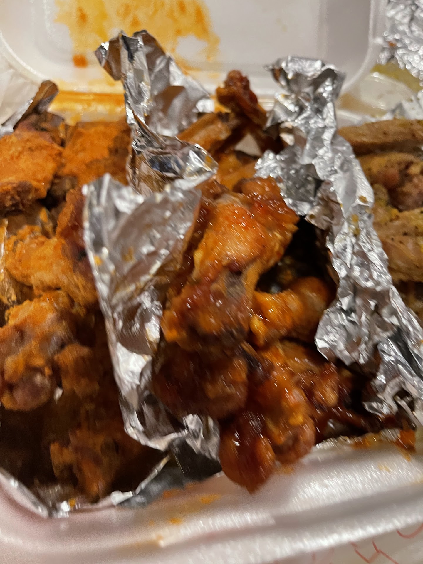 Read moreFood is fantastic! We were helped by Crystal [braided hair and huge smile]. She was so helpful & obviously proud of the place that I honestly thought she owned the restaurant. Everyone else was polite, but Crystal stood out for her friendliness & customer service. Place is a little shabby in a questionable location, but clean. Marked down because as others noted, wait times are really high...about an hour for counter order and there's no restroom. They have a setup so you can use the restroom at the gas station next door, but the gas station worker was kinda a sourpuss about it. It's clear why most people call in their order to go. We got ribs, 'cajun cali' wings, hot links & chicken strips. All of the meat was great - really star of the plates. The ribs were some of the best I've had, a bit on the sweet side for some maybe, but I loved them. The wings are small, but there was more than I expected & they were super tender & flavorful. The hot links had great flavor, served simply on a hotdog bun. For sides we got fries, greens & mac-n-cheese. The sides were ok. Standard fries, nothing special. The greens have a smokey kick that caught me off guard, not the standard salty fare, but very good. The mac had the same smokey flare as the greens, but honestly don't feel it was as successful. We got the peach cobbler for dessert. It's on the sweet side, but the bits of crust in it break up the sweetness, overall very good... get your own, don't expect to share. I'll definitely be back....probably for a called in...