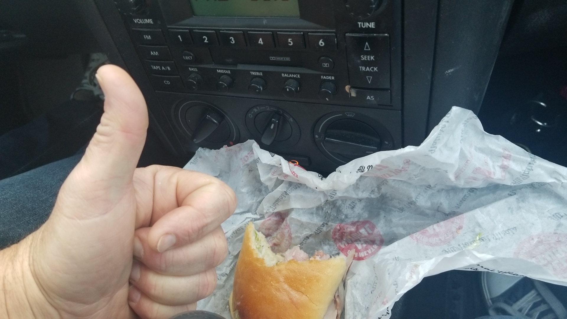 I’m not really too into eating in my car or at my desk at work, so I just said that’s fine I’ll head over to Jersey Mike’s. Not a good way to do business! As I’m writing this there are still people in they’re eating. I could’ve been half done already. Very...
