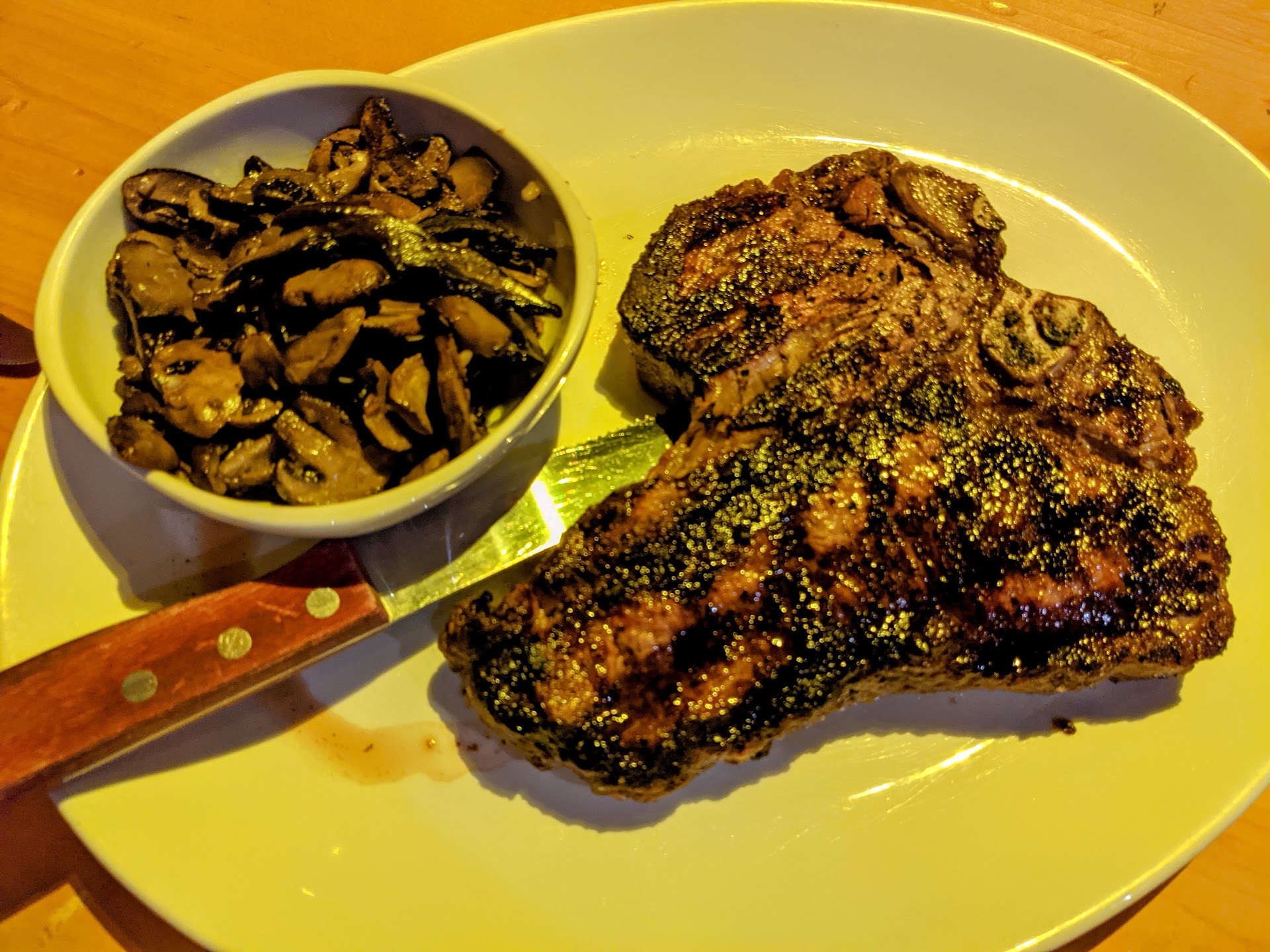 Read moreKellee was our server and she was fantastic. Extremely pleasant, and was on top of taking care of us. Unfortunately they cooked my steak wrong, and also my husband's. They overcooked my filet, and it was too tough to eat. She had recommended the Oscar style for my filet and it was not good at all. It was too tangy and the crab meat smell overwhelmed the entire dish. I asked for the sauce on the side as I was afraid it would not be good and I could still eat the steak, but they didn't make it how I wanted. I got a very well done steak with sauce drowning it. I would definitely not order this dish again. My husband's was extremely rare and he does not like it like that. The bread she brought out was good, and I liked the bisque. My son's steak was perfect, so he had no complaints. They gave us 2 desserts since they messed our order up. They were definitely unique. The chocolate "bag" was made of dark chocolate and everything on that plate was edible. The "creme brulee" wasn't a typical creme brulee, it was soft and no torched sugar. It was almost a pudding. I would come back to try this place again, and hopefully they don't overcook my steak again. The filet is too expensive of a cut to be...