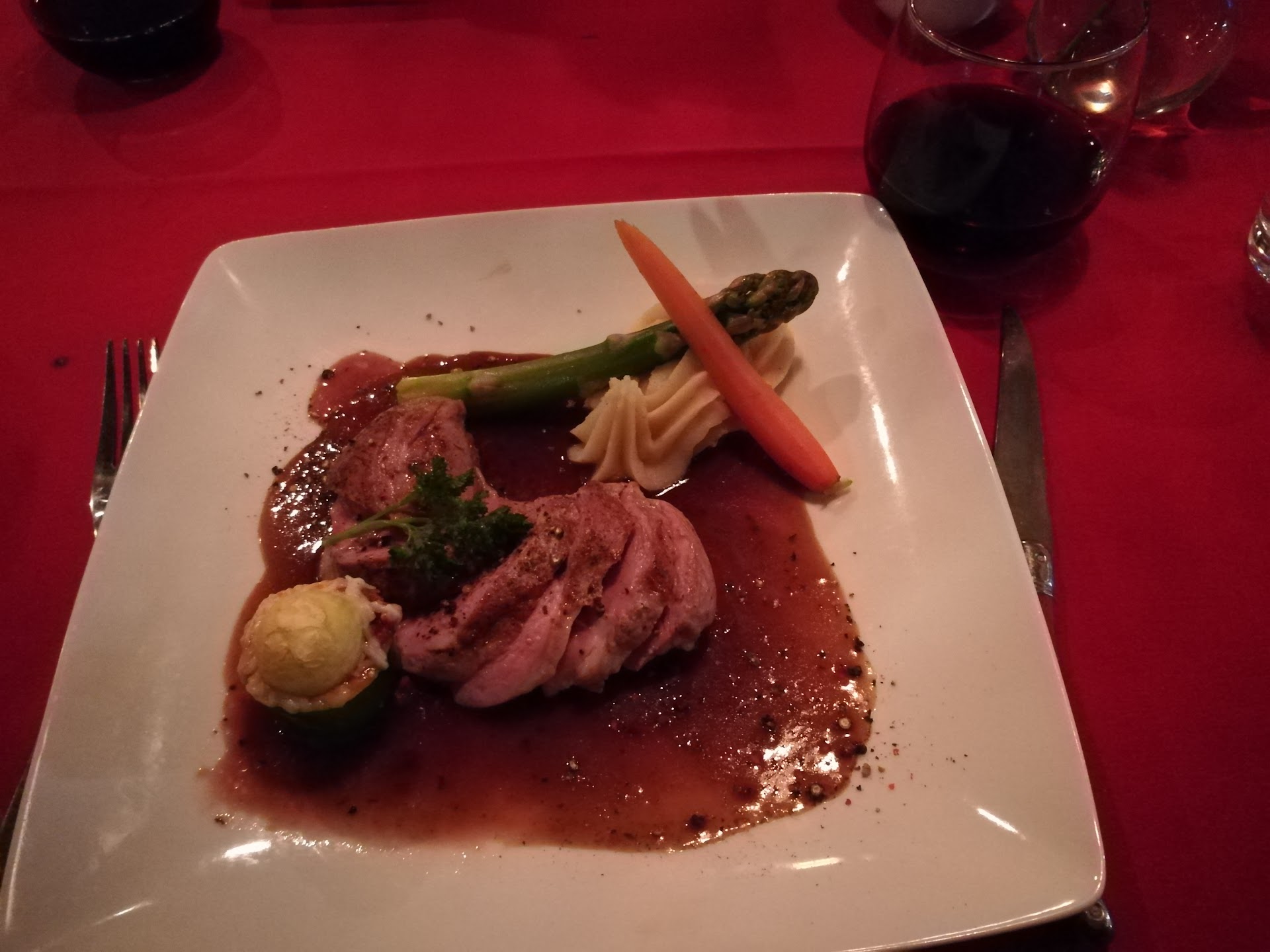 Read moreI don't know why it's taken us so long to try this place out but tonight I wish we'd gone sooner. The service staff was on point tonight - attentive, friendly and knowledgeable about what they were serving. So many places today, you ask a server about the food and they've never even eaten it or they don't know how it's prepared. No better way to start a meal than to talk to someone you can tell takes pride in their establishment. Started the meal with escargot and onion soup. The escargot was nice and garlicky and paired well with a good crusty baguette; the soup had a great broth, not so salty and strong flavored like you usually find. Oh and HOT! I hate when you order soup and it's just warm. Main courses we chose were the rack of venison and swordfish. The venison was presented perfectly medium rare with steamed vegetables and potato puree complimented by a bordelaise sauce with dead on nappé. The fish came on a bed of quinoa, steamed veg and an amandine sauce. Another home run. Other dishes we want to try when we go back such as paté, duck, pheasant, brie flambe, lamb and more I can't...