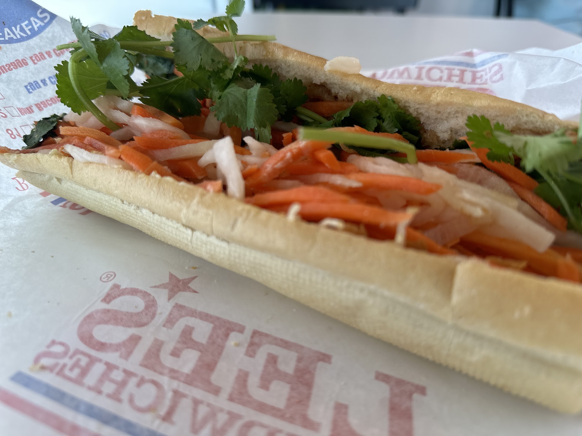 While not the typical order people come here for, I’ve fallen in love with the #12 “Chay” (vegetarian) with extra house pickles and add the house mayo. The fresh baguette bread is warm and perfectly crispy on the outside and soft in the middle. The fillings are crisp, refreshing and filling - lots of pickled veggies, crunchy fried onions, cilantro, etc. It’s THE choice for when you want a sandwich but don’t want it too heavy. You leave feeling fulfilled but...