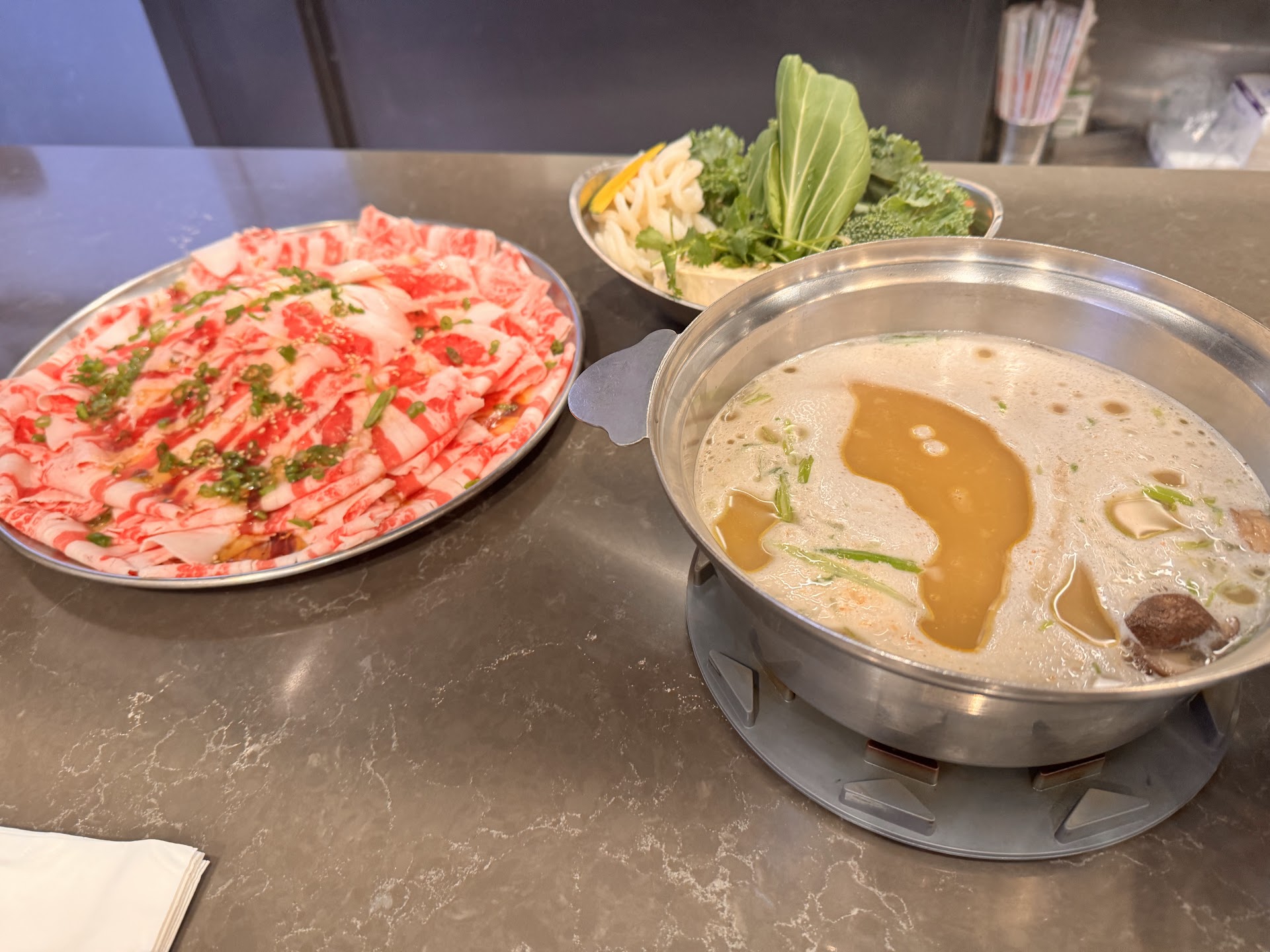 Mokkoji Shabu Shabu is a standout hot pot experience that combines fresh ingredients, a warm atmosphere, and unique touches that elevate the meal. From the moment you walk in, the modern and stylish interior sets the tone for an enjoyable dining experience. One of my personal favorites is their garlic shrimp—perfectly seasoned and cooked to enhance the flavor of the broth. The high-quality meat and fresh vegetables also contribute to a wholesome and satisfying meal.