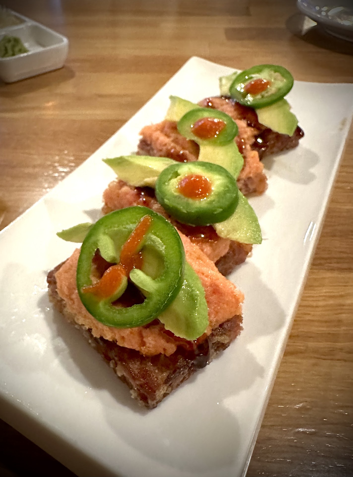 Read moreA great sushi spot in Riverside! Upon entering the restaurant, we noticed how nice the decor was; modern without being too trendy. There are tables, booths and a bar in terms of seating options. The menu is very robust, offering some fantastic options. From sashimi, cut rolls, hand rolls and chirashi bowl to name a few. My wife and I started with the crispy rice with spicy tuna. The crispy rice was perfectly crispy. The tuna could have been spicier but it was still very delicious. Then we had the hamachi Kama which was the highlight of our dinner. It was absolutely perfect and melted in your mouth. We then shared a Chirashi bowl which had a variety of fish, shrimp, scallops all over rice. Every piece of fish was so damn good. The presentation was exquisite and the portion was perfect for two people. Lastly, we had the Momo special cut roll and a Black Dragon roll. Both were satisfying and again also delicious. The service was very efficient. It was somewhat busy but the servers made sure every table was getting the needed attention. All of the staff was friendly. Although this place is not “cheap”, the quality of food that’s being prepared here easily makes it worth the extra $$$. I definitely recommend this place. I think this is now our top spot for sushi...