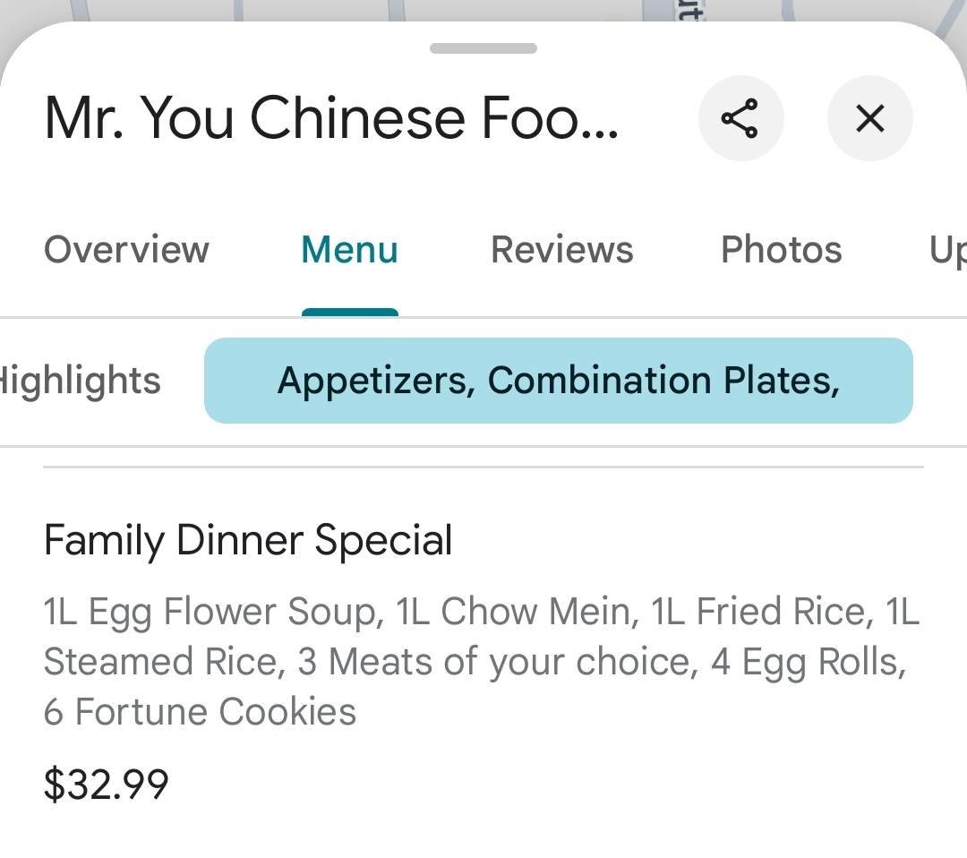 Ā Ā Ā Read more2 stars instead of 1 because it is clean inside. They many dishes unfortunately all are chicken with the exception of just a couple which are beef and 1 pork. I asked about pork dishes that could be made since they aren't out on the counter. The person at the counter said yes they had other pork dishes and talked to someone in the kitchen and they said no. Only 1 pork dish. So if you are like me and can not eat chicken you will not have many meat...