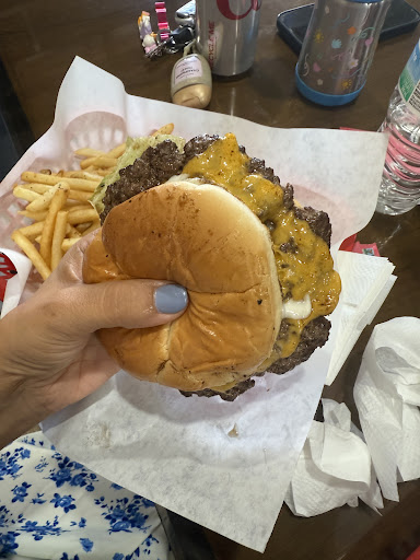 Read moreAs a former restaurant cook who made mostly burgers, I could tell my meat was cooked on a grill that wasn't cleaned/scraped off due to my burger dripping a dark almost black oil/liquid as well as black specs of char all over the buns. That was kind of a turn off & comparing photos that other customers posted, mine looked a little different. Also my fries had obviously been sitting out because they were not even a little bit warm when I started eating 2 minutes after getting my order. Somehow the burger & fries were still very decent on taste & I did like that they put pepper on the fries. Improvements are needed per my complaints, but overall not too shabby due to the food actually...