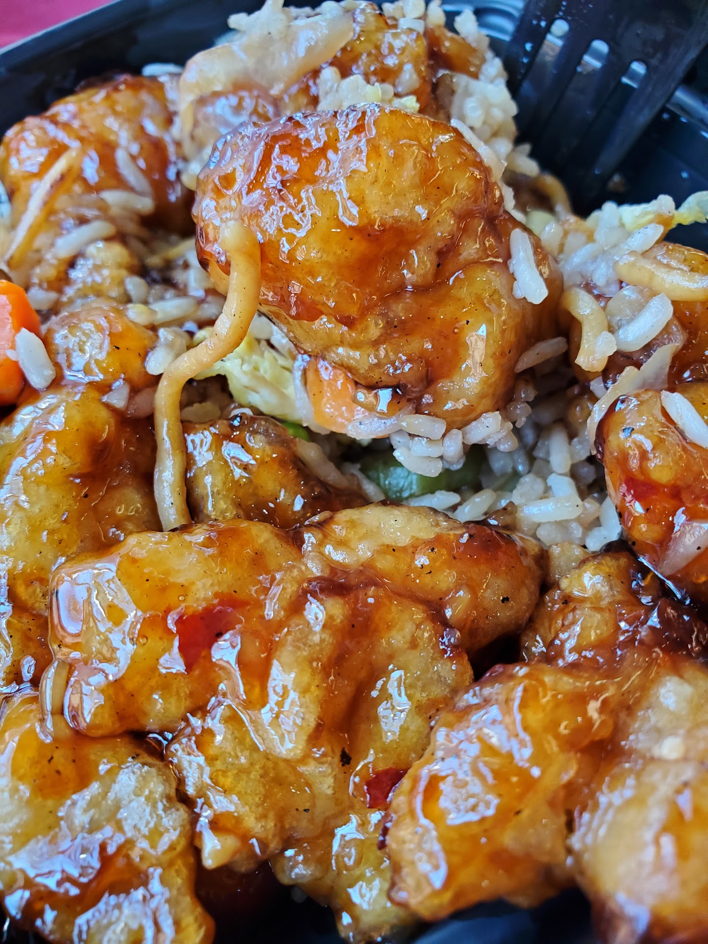 I got a plate (two entrees/one side), and the server piled on the mushroom chicken and gave me two full teriyaki chicken filets. My other guest ordered the Cub Meal, and they filled up the box all the way. Everything was steaming hot and fresh. The orange chicken was especially tender with a nice crispy exterior.
