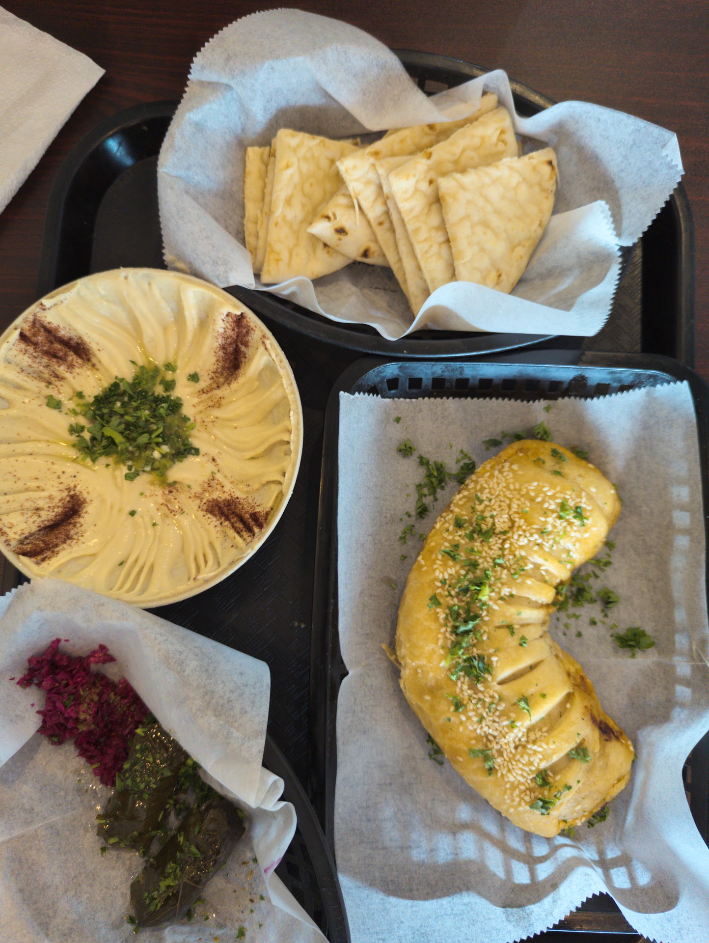 First time here on Oct. 14, 2022. Walk in and the place looks bright and clean. Right away the gentleman says order when you're ready and let me know if you have any questions. ( after all, it is a medditeranian restaurant so the food is different ) Hubby wanted the cream cheese pie and I wanted the spinach pie, but the guy said I'm so sorry, we make them in bulk and we are sold out but we will have them tomorrow. He saw the slight disappointed look on our face and gave us some baklava on the house. ( really it was no big deal that they were out of the pies, but he insisted on the free baklava) so, I ordered the medium chicken shawarma wrap and it came with french fries. Hubby ordered chicken shawarma and rice bowl with fries. We sit down and wait. Not long after he brings us the food. Now, my wrap was huge! The wrap was nice and crispy, the chicken and stuff inside was so delicious! I was asked when ordering if I wanted the pickles, lettuce and tomatoes inside, and boy- o- boy I'm glad I said yes!! The french fries were a stiff competition with McDonald's, and I would go as far as saying better! They were hot and so crispy ... just perfect for my taste! Hubby took one bite of his and made the mmmmmmmmnn sound. He loved his so much that he had me try it . Just the right spices, hot and tender chicken and the rice was cooked perfectly. Their garlic sauce stuff was amazing!!!! I dipped my fries in it mmmmmm. Portion sizes were big, and we both took " to go boxes" home. The guy asked us if everything was ok and we said " soooo good! We will be back!!" He was super nice and professional. If I would say anything at all negative it would be the constant dings of the door ding ding ding... lol it was starting to get annoying, but I understand why it's there. :) overall...