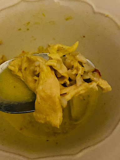He ended up with some spaghetti noodles and fried tofu. Then we waited for flatware because there was none on our table. Sigh.