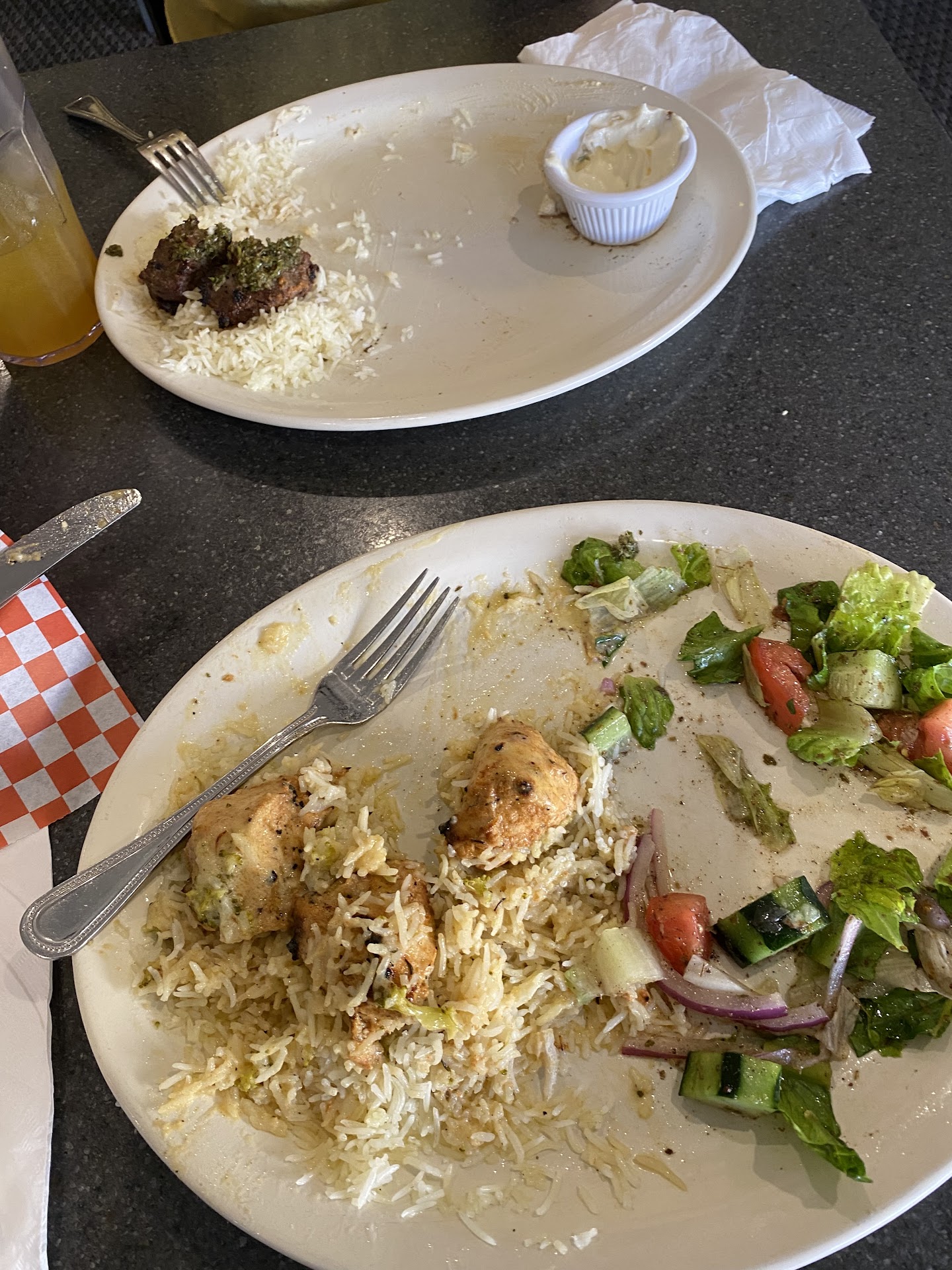 Their best/most flavorful meat was the kefta, although it is a bit on the salty side. Pretty disappointed by their âbeefâ which came well done/zero pinkness. I was also a bit surprised by the portion size of everything especially the meats. I feel like they could give 20-30% more rice, possibly the cheapest food one can make. And the meats? You will get about 2-3 oz of meat per skewer. I would say I got about 6-7 oz of meat which is pretty stingy for a 3 meat, I canât get 10-12 oz of cooked meat for $25+ tax? Not even a premium cut like filet, strip, or ribeye.