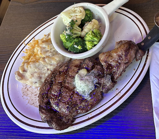 Ā Ā Ā Read moreWent for the first time tonight. Not crowded yet, so we were happy about that. Have never been in this building, so I donāt know how it looked before now, but I really like the decor. The acoustics were good, music not too loud, and was pleasant. Huge bar with lots of seating. I gave the food 4 stars because the Candied Bacon was definitely not candied enough. And lady at the next table said same, so itās not just me. It was also too chewy. Not sure how it was prepared, but please look for a better way. The sauce it came with was a sweet peanut butter, which was tasty. Just my thought, because I have had it before, but the very first candied bacon I ever had, was thick, crispy, and served with 2 sauces for dipping. One was a chocolate fudgy sauce, and the other was a caramel sauce, plus just a few apple slices with skins on, and some sea salt for sprinkling. Hubby ordered the Rib Eye medium rare. It came out medium to medium well. Good flavor, (herb butter itās served with gets ššup), but the type of Ribeye was more a select grade, than a choice. It was a huge piece of meat, and the 2 sides, Cheesy mash? and broccoli, cauliflower medley were cooked to his liking. Service was a 4 because the waitress did not know how the chef cooked his steaks to order, when hubby asked her. She did come back later and ask, so maybe she is new. We did not order anything from the bar, because they donāt have Happy Hour, (we were told when we asked), and no price for bar drinks on the menu usually means the prices are not spectacular. Line Dancing on Wednesday nights. Not sure if offered any other night. We will come back, we search out mom and pops to try, and patronize the ones we love. I really want this place to make it, and would love to try the...