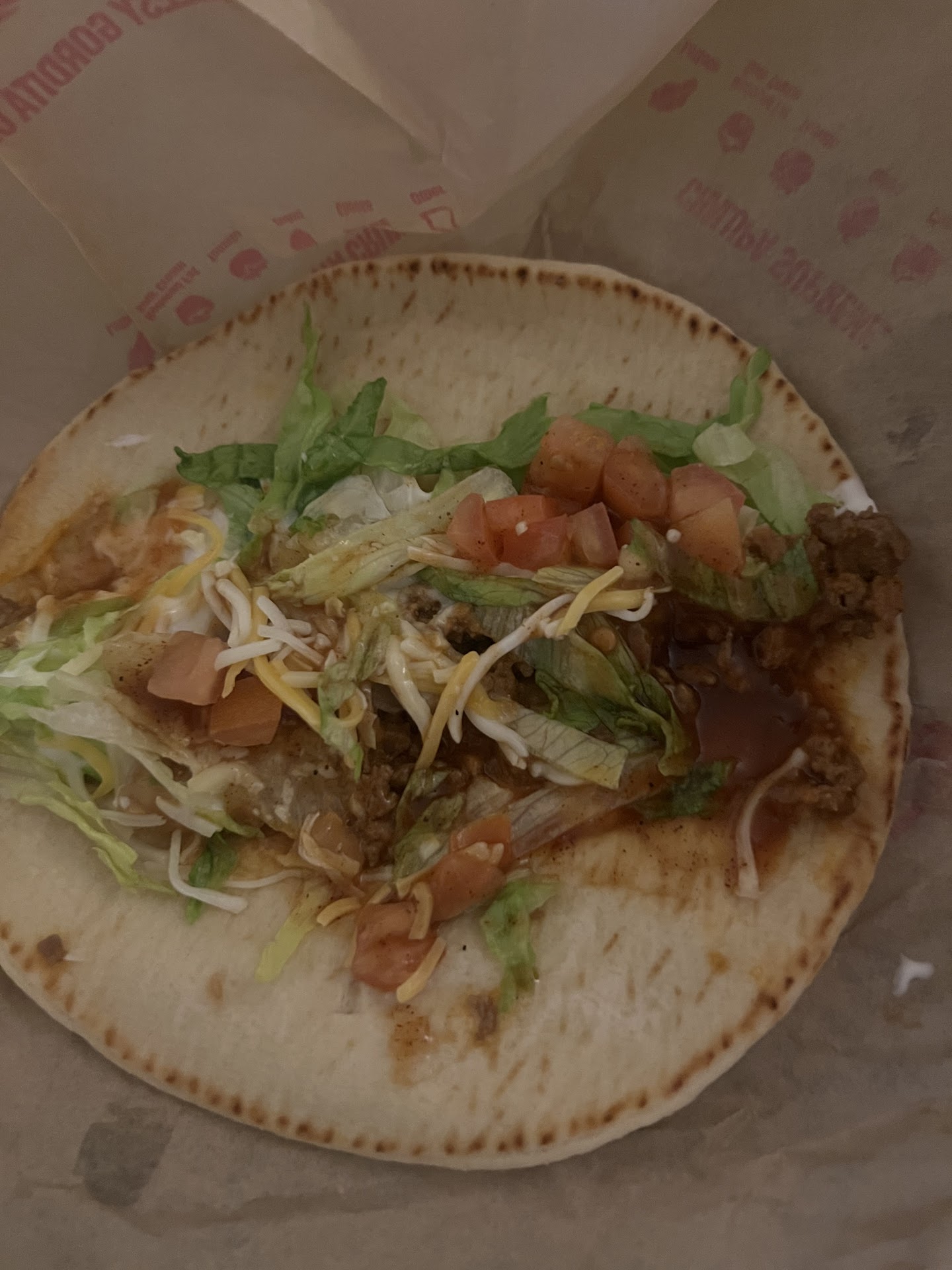 Ā Ā Ā Read moreAt this taco bell it takes them forever to make the food and when my food finally arrived they had it on a tray when I put on the machine that I wanted take out. So I told the worker and he put all the food in the bag. Then he said ok there, but he didn't gave me the drinks so I told him and he gave me the drinks. Then I got to my car and checked the food because I have a very specific order. So I checked a taco and it had tomatoes and sour cream which I put i didn't want. So I went to go tell them. When I got in a lady looked at me so I told her and she said ok and went to go get the food and I heard the same guy that gave me the food told the lady that was giving me the right order say "tell him to give you the back the taco" in Spanish and I understand Spanish so when the lady came back to give the right order I said do you want back the taco and she said no so I left. Last thing when I got back to my house I was eating the burrito and at the end I tasted sour cream so I checked ans saw sour cream at the end. So with all of that I would rate this taco...