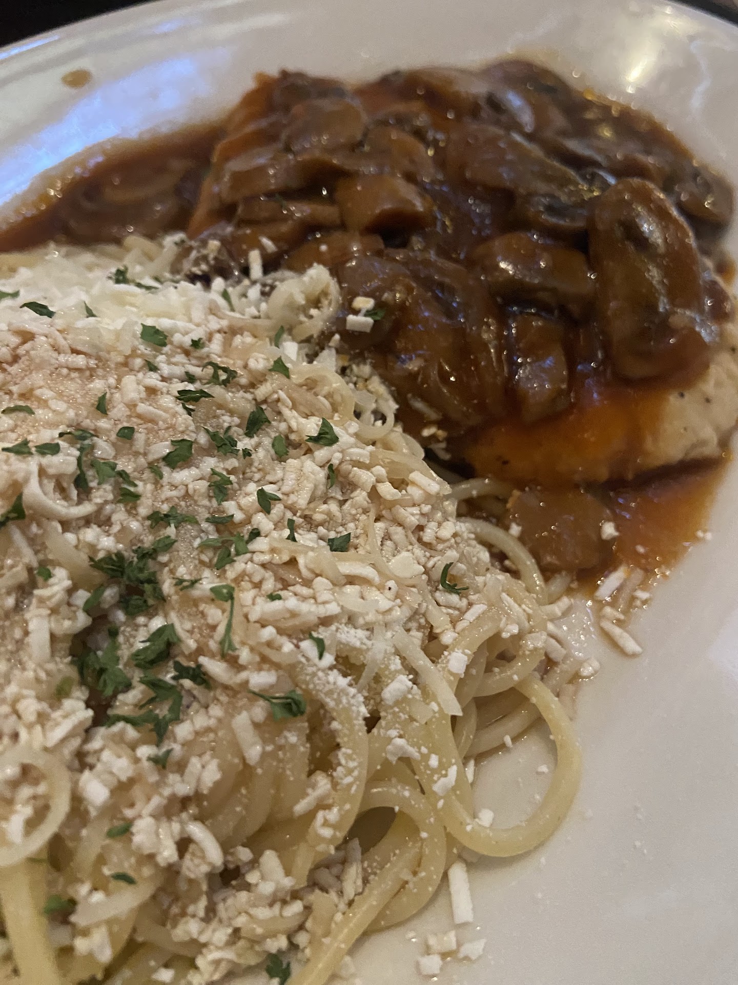 Read moreWe dined here as a family last Friday night. When we pulled up around 7pm, the parking lot looked pretty packed, so my husband got out of the car real quick to find out how long the wait would be. We were pleasantly surprised that they told him 20-30 minutes, so we then went to find a parking spot. We then got out of the car to walk into the resaurant, but all along the sidewalk outside the restaurant, there was a very strong sewer smell--that, of course, was very unpleasant. When we walked into the restaurant, there was another unpleasant smell that was not as strong, and quite a bit harder to define. Not sewer, though. We only waited MAYBE 5 minutes and were told a table was ready! I'm very glad to say that once we got o the table, there was no unpleasant odor. I think our server's name was Ethan, and he wasn't horrible, but would've been nice if he had been slightly more warm and welcoming. We ordered our food, and it did take quite some time to receive our appetizer of garlic cheesy bread. In fact, it came out after we received our soups and salads, but fortunately, we were there for a leisurely evening and meal--hoping some of the crowd would die down for the Festival of Lights afterward. We all seemed fairly happy with our food, though for my liking, you can definitely tell the food has a crazy amount of sodium. I wouldn't recommend eating here all the time. About two-thirds of the way through our meal, our server inexplicably donned a face mask. I'm completely disgusted and grossed out by those bacteria-laden materials. They really should have no place in a restaurant. The fact that anyone is still wearing them is mind boggling. Anyway, we had a nice evening, but I just would not go back. I think there's just a plethora of other choices that are...