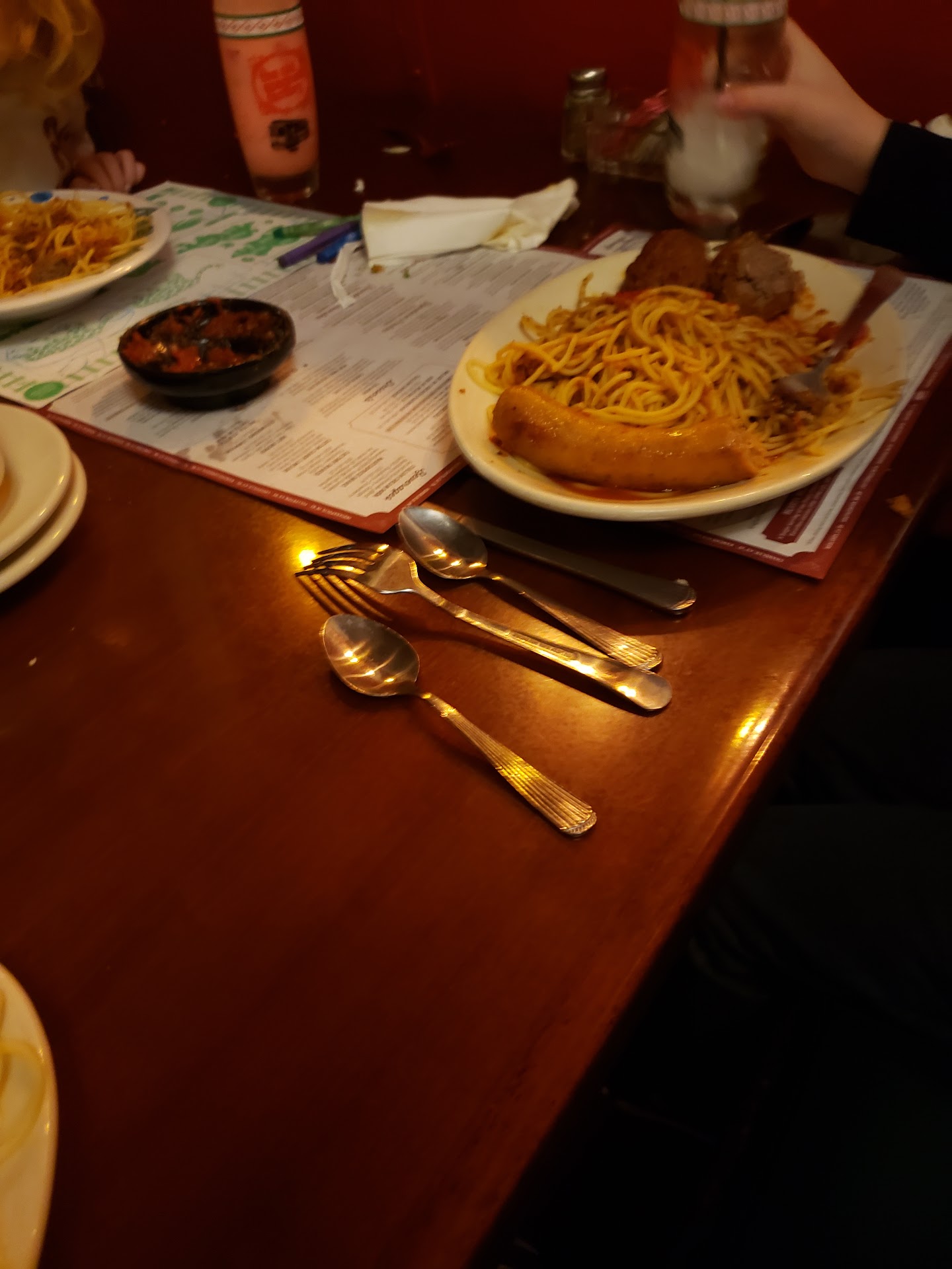 The old spaghetti factory has become a favorite over the years. The seating arrangements easily accommodates large families and groups and for smaller parties the trolly makes unique seating and the smaller booths provide and unexpected intimate feel in this hustle bustle place. I've finally found something on the menu I enjoy and look forward to every time. I recommend the meat lovers if you are used to an American spaghetti. It has 2 large meat balls and one spicy Italian sausage. My husband prefers a more traditional sweet red sauce so he orders the rich taste of the Mizithra pasta. The pesto salad dressing is amazing if you enjoy a ranch style dressing. Meals also come with a ice-cream dessert. We often get the Spumoni and just eat the pistachio and strawberry sections. 😆 Service continues to be something to desire. It seems as though the waiters loathe helping others tables or having help with their tables, even if it is a large group. The last 3 large groups I've eating with here have had the same issue where our assigned server either refuses help or other waiters/bussers are standing around clearly not offering help to our large group table that was unattended. Also, I feel that there should be some training provided to wait staff to space out the salad and main course each time we have had the same issue. Salads finally are placed before us after what feels like forever and then two bites into the salad the main course arrives and ends up cold by the time we finish the salad. 😞 Management should also train wait staff to inform patrons of upcharges of things asked for such as extra sauce. Often time this place is sauce stingy so just beware that apparently there is an upcharge if you want sauce on all your pasta 😆 but they dont tell you until the bill comes. Lastly, I would not consider this a vegan or vegetarian friendly place as I did not enjoy what I ordered previously when on that type of dietary...