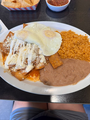 Read moreGlad to see a new Mexican restaurant in the neighborhood! When we called in our order, the lady over the phone was very helpful with my questions. My green chilaquiles were very good. The green sauce had a good flavor and very minimal spice. The chips had soaked up the sauce enough where they weren't dry and crunchy or too soggy, they were just right. The eggs were cooked over medium just like I ordered. They came with a side of refried beans and rice which were also good but I couldn't finish cuz I was so full! I only wish I would've remembered to take a picture before I started to eat. Pricing was okay. The total for 4 plain tacos and an order of chilaquiles came out to $22. Will definitely be back and try some of their...
