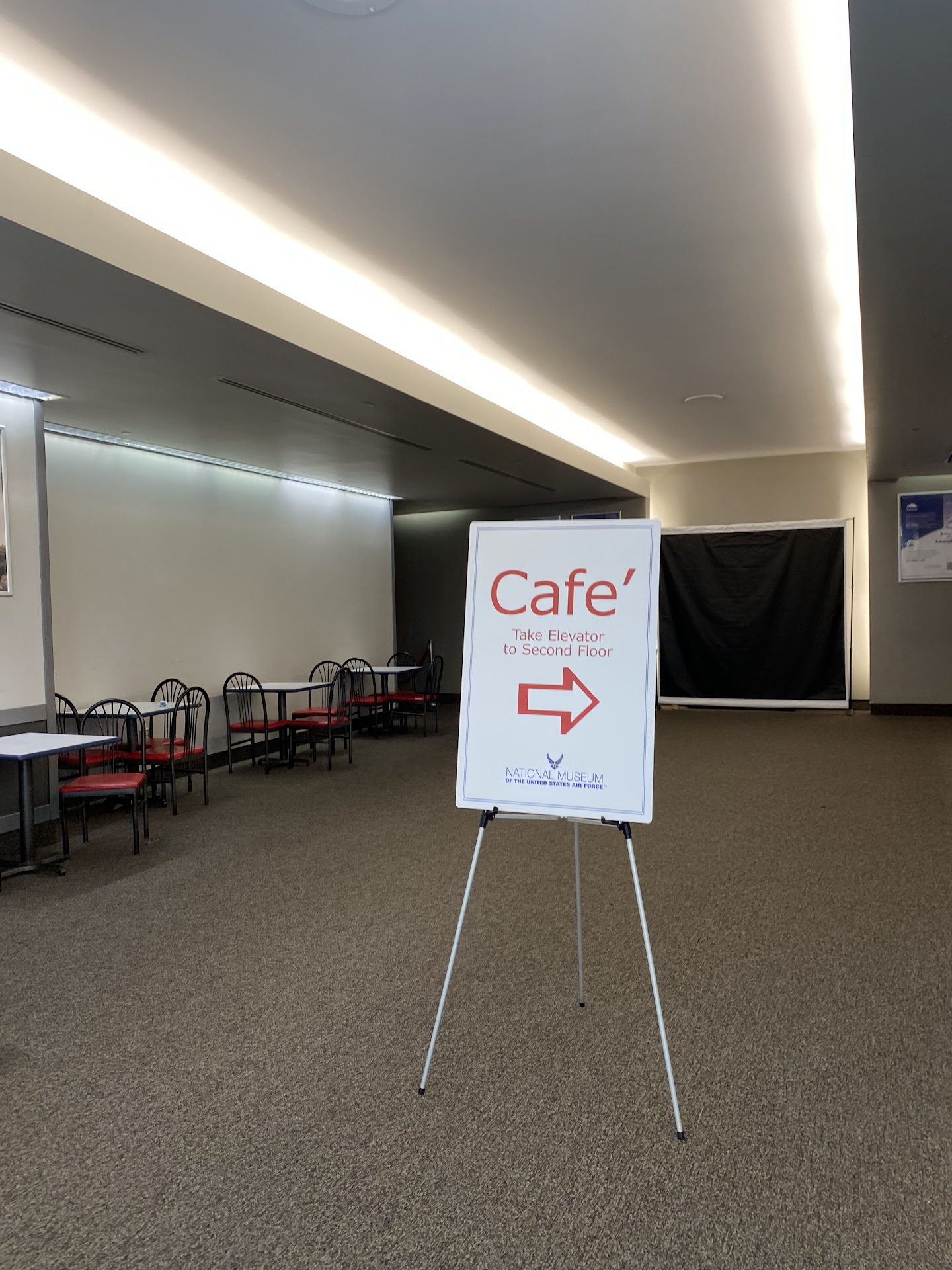 My family loves going to the Air Force Museum but this part just reeks of a bad contract. You can't take outside food/drinks into the museum. While I am wholeheartedly in support of contributing to this free museum in any way I can, the cafe was way overpriced for terrible food options. The quote "Torpedo Dog" quote was just an oversized, plain hot dog that was $6.50. Prepackaged muffins (like at a gas station, not baked onsite which i can see paying more for) were $4.50 and $4.25. Chips are $2.00. They did have some cold turkey wraps and sandwiches in the refrigerator that I did not see until I had ordered the hot dogs. Regardless, the cafe missed the mark in my opinion. I recommend skipping this Cafe and try the Refueling Cafe that is near the space area. Or eating before you get...