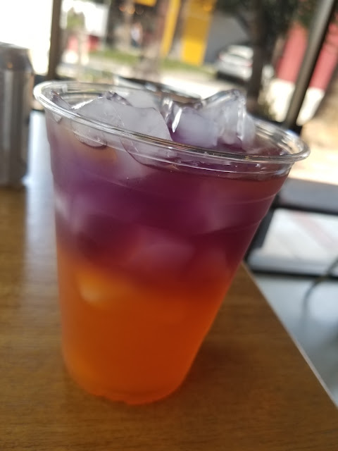 Now for the food. My husband got the large Thia Milk Tea. It was big and beautiful and tasted better than it looked. Not over sweet but still sweet. The chicken dumplings were fried and they had a good crunch to them without being too hard. As for the ramen...first let me say, that it doesn't compare to LA or OC ramen. But for inland empire ramen it is pretty remarkable. The spicy isn't too spicy. I got a 3 chili and I used their chili bar to add more kick to my ramen. (Oh yeah, in the middle of the restaurant they have a chili bar where you can add chili, hot sauce, lime juice, soy sauce, and other things to your ramen. They have little dishes for you to fill and take back to your table.) Overall, the ramen was good, there are add ins so you can Frankenstein a bomb ramen (if you are willing to pay $0.50 - $1.50 per add in). Can't wait to try their...