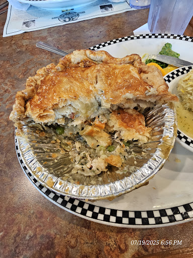 Read moreThis was my second time ever going to a Black Bear Diner. Coincidentally, the first time was at this same restaurant. The first time I had fish and chips because the chicken pot pie was not in season. So I was excited to know it was on the menu today. But what a HUGE disappointment!! I have three major issues with it. First, the pie was not that large. For a restaurant that boasts generous portions this pie was small. I even had to double-check with my server, Jared, to confirm that my order wasn't a smaller version somewhere else on the menu, like a lighter version of the pot pie. I saw they had that option for another dish, the chicken fried steak, that's either 5 or 10 oz. But he informed me this was the only pot pie option. Secondly, I would not call it a chicken pot pie. It was a 70% thick croissant bread with a 30% filling inside. I would have had more meat and veggies by ordering a croissant chicken sandwich instead. Third, the filling inside was a bunch of mush doused in black pepper. Where was the "creamy gravy"? I couldn't tell what vegetables were included in the mush. It was so thick that when I scooped out a portion, the food may not have left my spoon if I had flipped my spoon upside-down. And speaking of vegetables, the menu states the chicken pot pie comes with side vegetables. When my meal arrives, I have the pot pie with a small corn on the cob. Jared tells me the corn is the vegetable of the season. I believe the menu should then say, the pot pie accompanied with "a" vegetable of the season and not, a side of vegetables. The worst part is, I paid $13.79 for this "chicken pot pie" and I was still hungry! Next time I want a chicken pot pie, maybe I should just go to my local grocery store and buy a Marie Calendar's chicken pie, from the frozen section. That pie would have the creamy gravy, nice chunks of chicken, and a good vegetable assortment with only 20% bread crust. At least I would be full and have spent...
