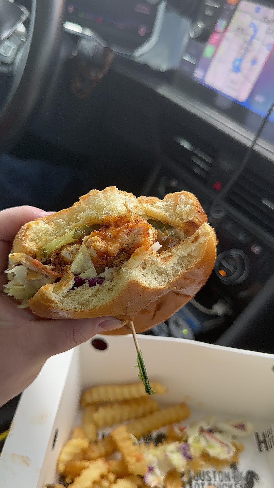 Read moreHouston Tx Hot Chicken (HHC) serves up a seriously spicy experience with their Original Spicy Chicken Sandwich. From the first bite, you'll feel the potentially intense heat of the perfectly seasoned crunchy breaded chicken breast, leaving you tearing up and sweating - in the best way possible. It's quickly become my new favorite!