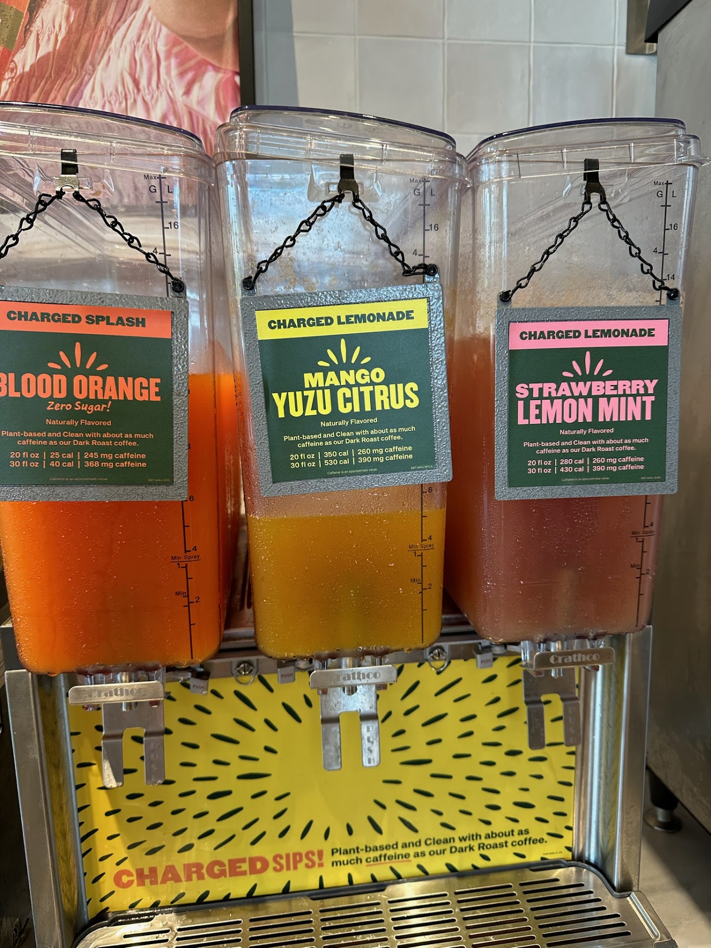 My only watch-out is the drink station. There are 3 very colorful juice options that are visually appealing - both my wife and I were going to get waters to go along with our meal, but after glancing over at the juice station, we decided to pay for a drink. I was about to fill my cup with the Mango Yuzu Citrus and my wife was going to try the Blood Orange when I happened to notice in the small print that all of the colorful juices contained caffeine! And not a little caffeine, but a heart-exploding 390 mg of caffeine - the equivalent of TWO Monster energy drinks! The label deceivingly said it had about the same caffeine as a cup of coffee. I'm not anti-caffeine, but can we please have healthy fruit juices without jacking them up? The other concern is that any child who sees those drink options will automatically gravitate to these colorful juices, and that's a recipe for disaster - both for the kids' developing cardiovascular systems and their parent's sanity!