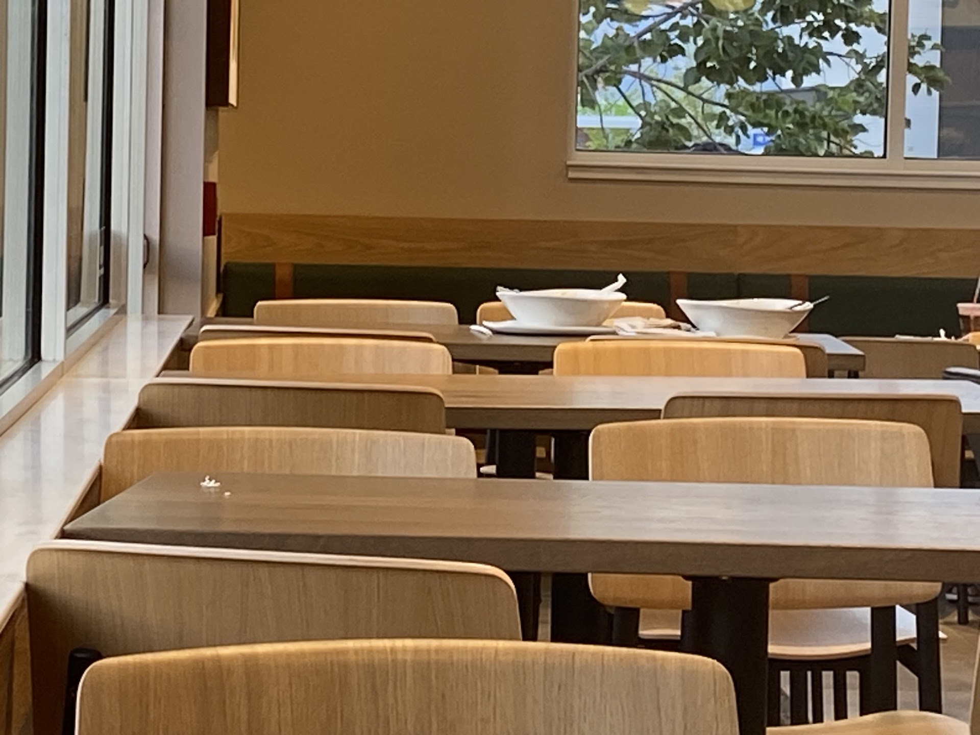When we finally got the order, it was late, and we just wanted to get home. When we got home, we realized that there was no bread bowl, the soup was cold, and the muffin we ordered must have been replaced with an old hard cookie (that we ended up throwing away), because there was no muffin and we didn't order a cookie.