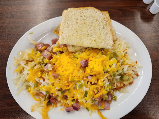 Read moreSaturday morning, cafe built into a gas station, somewhat like a truck stop...pretty good! Simple menu, actually very simple. One page for breakfast and opposite side for lunch. That's okay though. The prices were reasonable and all three of us enjoyed our food which came out hot with generous portions. My eggs were richer than normal and may have been from a local source. I had ham, which was fork tender and my sour dough toast (only one slice, but it was large) was fresh and very good. The hash browns were probably factory made, but at least cooked well. Mom had a senior selection of French toast that she enjoyed and said her egg was also tasty and cooked perfectly. The only less than great thing was the service. I had to get up to ask for moms coffee and my wife's soda long after ordering it. We also finally gave up waiting for our check and just went up to the register to pay. Two waitresses were playing on their phones while we waited before giving up. I used to own a restaurant and no way would allow cell phones to be out. Not only are they distractions, but are also very, very laden with bacteria. I still left a moderate tip for the food coming out...