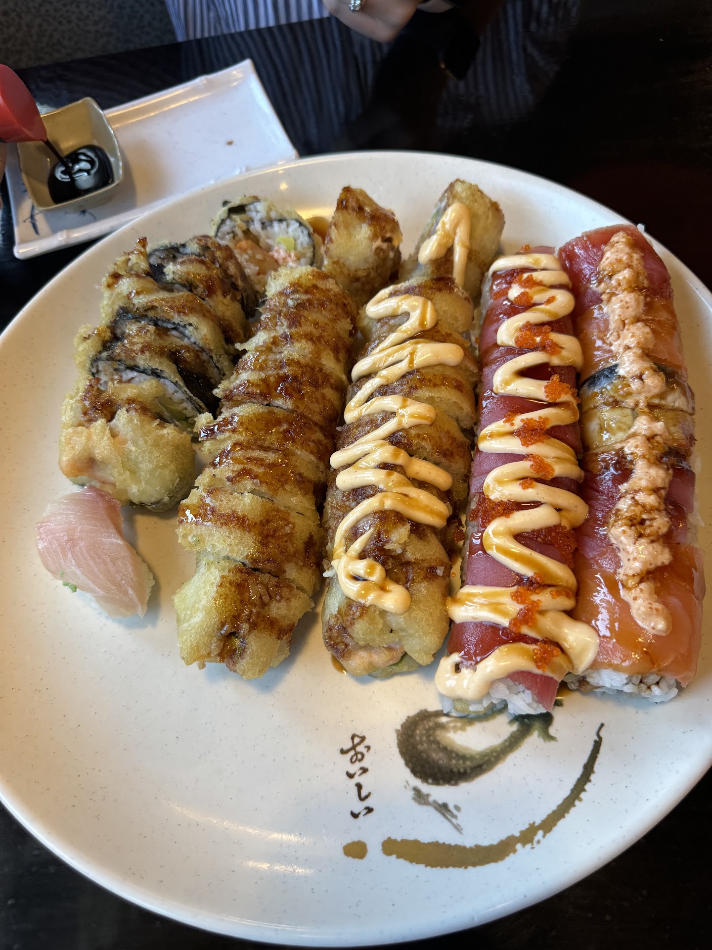 The rolls are really good, some are even exceptional, BUT I wish I could say I had found a favorite in the past 8+ months. When they bring out the rolls they don't really tell you what they are... or, they have a bit of a struggle pronouncing what they are... either way, I've been eating these rolls and I don't really have a name attached to any of them in my head. I think that's a bit of a shame, by this point I feel like I should instinctively know what I like and what I want to order, or even good rolls to recommend to friends or potential customers like on this review, but I just haven't been able to memorize what things are called (beyond rolls found elsewhere), because more often than not, I can't tell which roll is which when I order them. And the server doesn't come around often enough for me to ask. What's worse is I order rolls I don't like, and I keep ordering rolls I don't like because I don't know what I don't like because nothing is attached to a name.