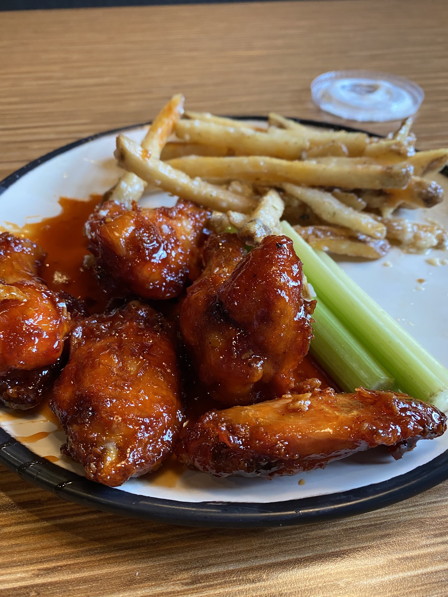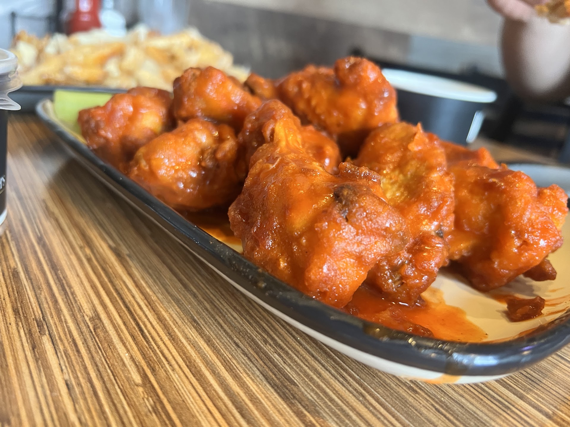 Read moreFood: I’ve only had the wings and fries there. There wings cooked just right, moist inside and slight crunch on the outside. Their spicy ghost Pepper was pretty hot, kinda lingers so I suggest eating it after the other sauces. Classic buffalo wings , exactly the title, your classic buffalo wing. I’d like to go back and try their other sauces.