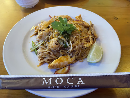 Moca, Moca…. What a welcomed surprise to this area. The quality and passion that goes into cooking/serving these dishes are evident. My significant other and I come eat here at least once a week. Our personal top favorites are Mongolian beef, Chicken Pad Thai, and General Tso. I prefer to go at lunch as they offer a generous portion with a side (Miso soup is so good) for only $8.60! I mean you cannot even get a less than satisfying fast food combo filled with artificial flavors/preservatives for that price. The Mongolian beef is not on the lunch menu but he still gets it as the beef is of butcher quality and definitely worth the price. While the food is superb the proprietor is equally as wonderful. She always remembers us and goes above and beyond. I am a heavy sauce type of girl. On my last visit I ordered Chicken Pad Thai. When she asked how it was, I told her that it is delicious as always, but next time would like a bit more sauce for my noodles. I said this knowing that the sauce usually prepared while in wok. She immediately went into the back and had them whip up some Pad Thai sauce on the spot. The fact she will not let her patrons leave without being 100% satisfied is almost unheard of these days. We are sold. Lastly, we always enjoy the ambiance of the restaurant. Moca’s front of the house is always clean, welcoming and has a zen feel. I cannot speak to back of house as I have never been in the back. After ordering I always wash my hands. Even the facilities are kept tidy and very clean. If you are looking for average Asian food, look elsewhere. If you want a clean space, fresh ingredients, quality food, and caring owners then this...