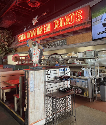 Nestled in a quaint corner, Two Drunken Goats beckons with its vibrant outdoor seating and promises of flavorful indulgence. As you step into the lively ambiance, the air is filled with the tantalizing aroma of sizzling dishes and the cheerful chatter of contented patrons.