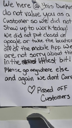 Read moreMy wife went to this establishment on 5/31/2025 around 08:00 for my coffee and sandwich. it took 10 minutes before she ordered and another 10 minutes before paying for the food even then my coffee order was wrong. my wife was extremely upset with the service given, no apologies given at the store before she left, we was traveling back to Charlotte NC. We called and talked to someone she said that she was the manager she apologized for what happened but nothing for her trouble. I felt truly outraged that my wife experienced poor work ethics . I need someone from corporate to contact me and handle this situation. just because you are the only dunkin donuts store in the area doesn't mean you can treat your customers with poor service. As i see this establishment reviews i now understand why this store is running so poorly . First of all i don't see corporate responding. Two none of our complaints. This must be a franchise, not the actual main company Of Dunkin' Donuts. Because surely they valued and respond to customer complaints.About their stores . So customers of Dunkin' Donuts, please look at the Reviews and make your own determination and go at your own risk.. Because surely as much as I love my coffee. I will not ever return...