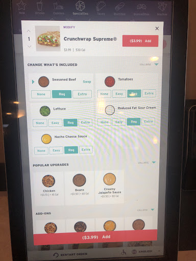 Read moreIt's not great food fast, and it's not great fast food. We stopped using the drive thru service about 2 years ago because they would ALWAYS (I am not exaggerating) leave out 1-2, sometimes 3 and 4 items. Calling them has ALWAYS (again, not exaggerating) resulted in being outright told I was mistaken, or being heavily inolued that I was wrong about what I ordered. Calling the corporate number gets ZERO RESPONSE AND ZERO SOLUTIONS. So we began going inside to order, thinking it would help somehow. It hasn't. Before we leave, we have to check our receipt versus what's in the bag. Guess what? ALWAYS missing something. I'm not exaggerating at all, people. It's to the point that we DREAD going here when the kids ask. I'd rather go spend about $30-$40 more at a local Mexican restaurant than deal with the ineot service if this store. Absolutely unacceptable, but somehow, the place...