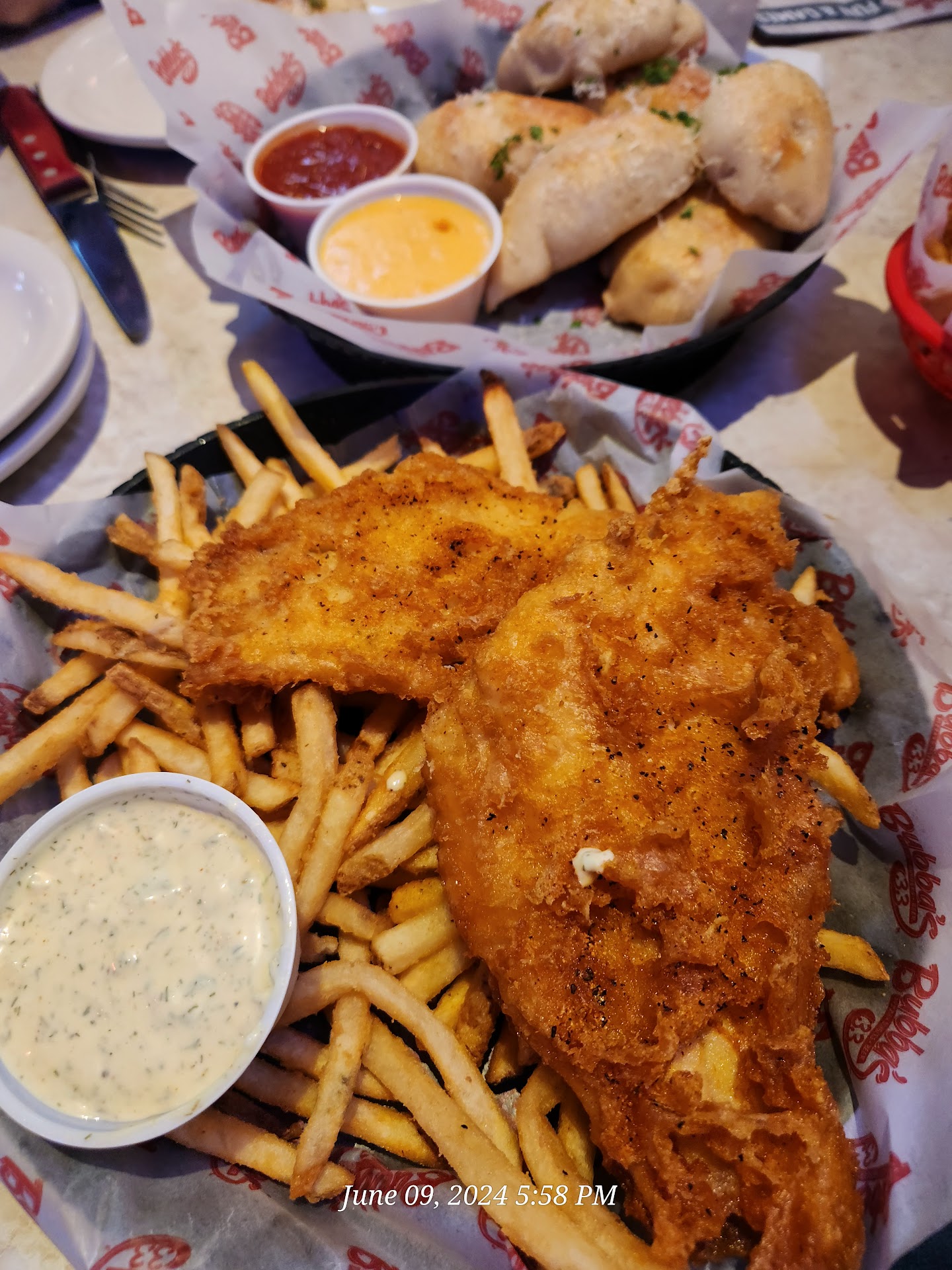 Food: onion rings that my brother in law ordered to share were lovely. He also ordered fried pickles. They tasted like fish and were put aside.. Most of the main orders didn't arrive until 6:45. Just burgers, salads, and 1 steak. My wife's order arrived at 7:10 and was the wrong dish. The correct dish didn't arrive until 7:35. My bacon cheese burger still hadn't shown up and upon inquiring as to why they had forgotten to make it. They put the order in, it arrived at 7:45 pm and was cooked to medium and I had asked for well done. The waitress and I had a discussion even about how they normally cook to medium well and I made it clear that since it had raw bacon mixed into the patty that I wanted it cooked well done with no pink. Both patties arrived to the table raw in the middle. The waitress saw, agreed that I had requested well done and assured me that the order was placed as such but the kitchen goofed. They remade the burger and I had to take it home in a box since I finally had my food at 8:10pm.... 2hrs 25min after seating and well after everyone else had eaten both appetizers and entrees.