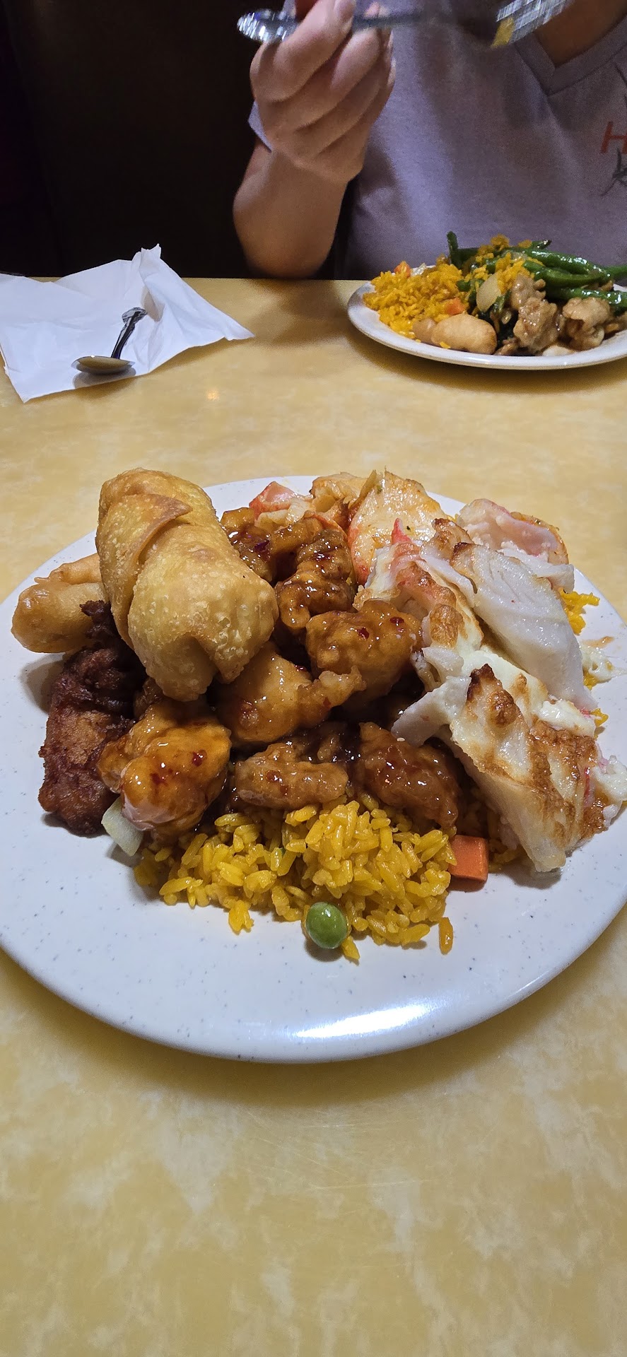 Food was utterly disgusting not worth 12 dollars a person. The sushi tasted bad and some had a creamy cheese that was almost impossible to consume. The cheesesteak tasted like/was covered in grease, a great dipiction of american cusine, but was absolutely horrible after a couple of bites. The bourboun chicken tasted like it was engulfed in aunt jemima syrup. Most of the seafood tasted like imitated fish and was really gross. Cocunut chicken should be at the desert bar since it was coated in sugary syrup with a hint of coconut, it tasted fine at first but after more than one bite it felt like my blood sugar rose significantly. The mussel was so gross and looked like coughed up phlegm and trying it made me throw it up into a napkins as was were most of my food ended up going. Overall the food was 1/10 because even after everything at least the noodles and rice tasted quite good.