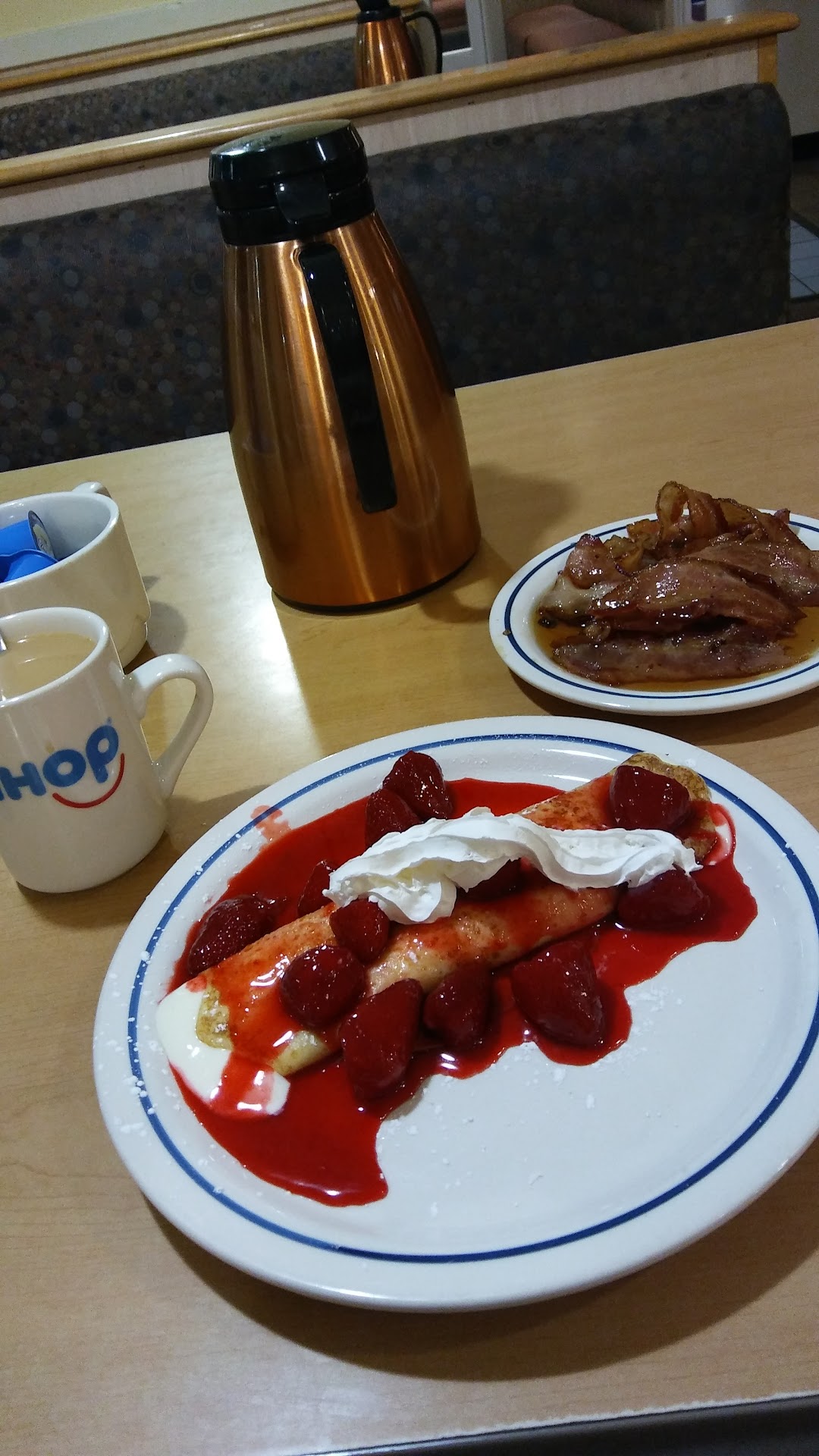 My girlfriend and I came in around 10:30pm with only one other couple in the restaurant. They left shortly after we arrived, so we were the only customers. The waitress neglected us as if the restaurant were full, and when we finally got our food, it was in to-go boxes for some reason. No explanation from the waitress other than "they put it in boxes so I just left them in there in case you want them anyways." We did not order large meals, and had no intention of saving our food, and so the boxes were just an inconvenience due to their shape, which made cutting pancakes and eggs quite awkward and difficult. After receiving the food, she never asked if we needed anything else and walked away before I could ask for ketchup. I didn't end up getting it until 15 minutes later. About the same time I got ketchup, a large party of about 25 people came in. Although we were the only customers in the restaurant, she sat them all next to us, so it was too loud to have a conversation with my girlfriend. Once the crowd arrived, we were neglected entirely, despite being out of water and completely finished with our meal. We did not recover the check for about 10 more minutes. Once we got the check, we immediately stood up and went to the register, however our lovely waitress decided to walk the opposite direction and ignore us once again. This was our first and last trip...