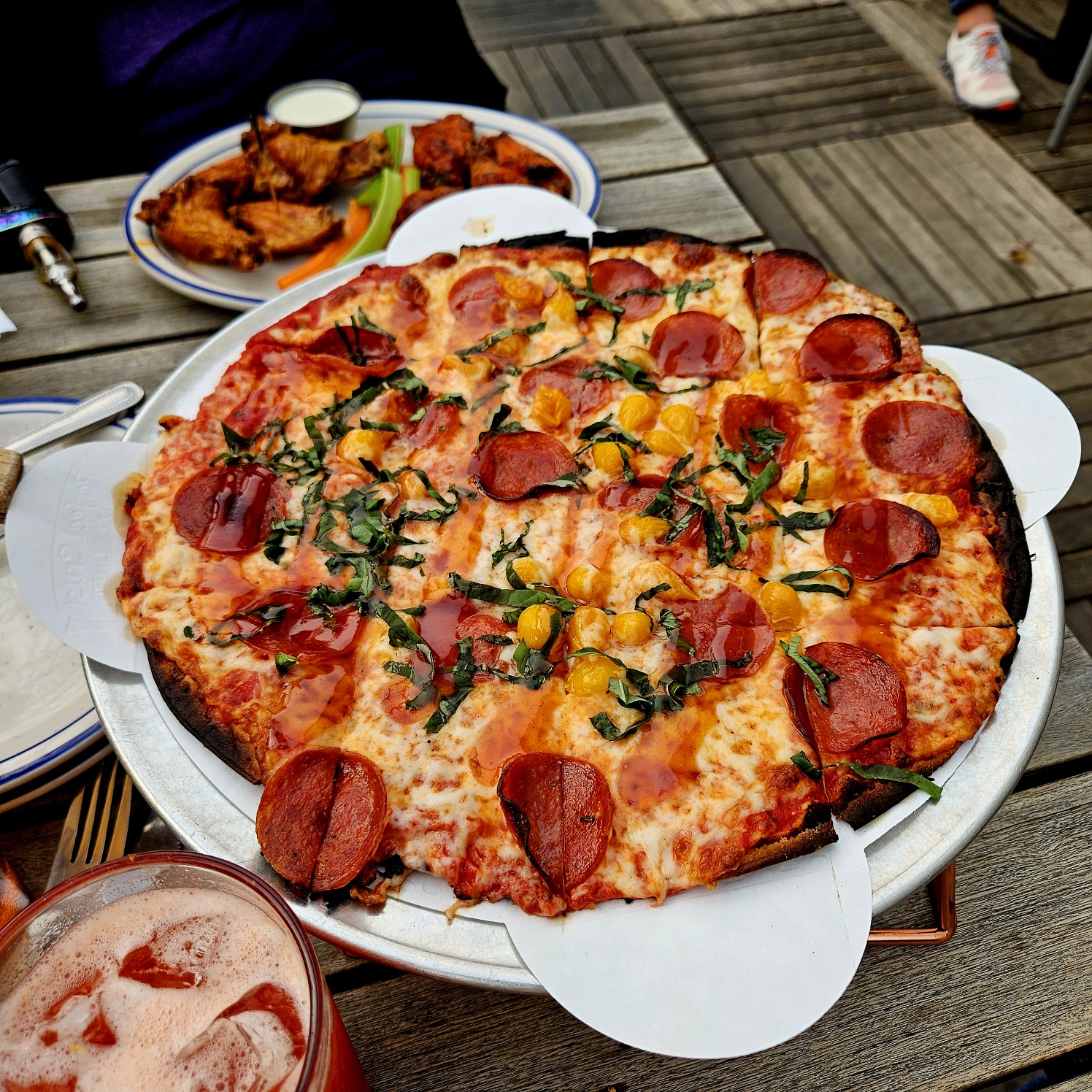 A great new and locally-owned staple, with food and drink options for anything from casual cocktail dates to family hangouts with kids! We came here for a late Sunday lunch and tried two build-your-own pizzas and the clam strips.