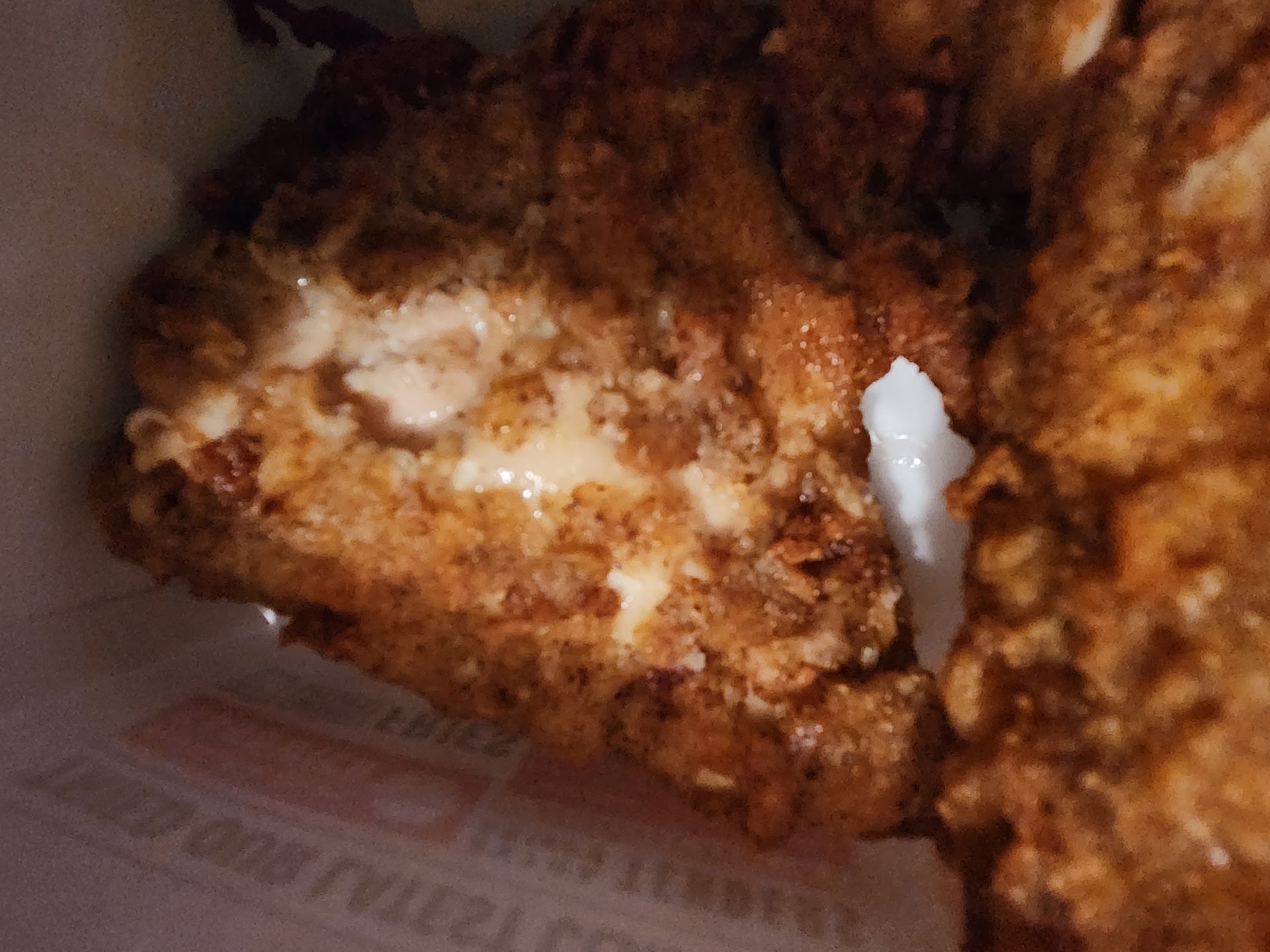 Read moreWow KFC has gone down hill. I thought they breaded their own chicken? So why, when I placed a pickup order for 4:45 PM at 1:30 PM, am I being told there is no extra crispy chicken like I ordered? Not to mention the kid up front was on his phone playing videos extremely loud when I walked in (because, of course I was the only person there) and didn’t even notice me until one of the cooks came out to help me. The original recipe chicken tasted like one of those frozen Banquet fried chicken meals. I am SO glad I bought an extra “Large” mashed potato for an extra $4 because a “Large” mashed potato is about 2 servings. Thank god the coleslaw still tasted the same but that’s about the only good thing. I haven’t had KFC in a couple years and now I remember why! $35 for a family...