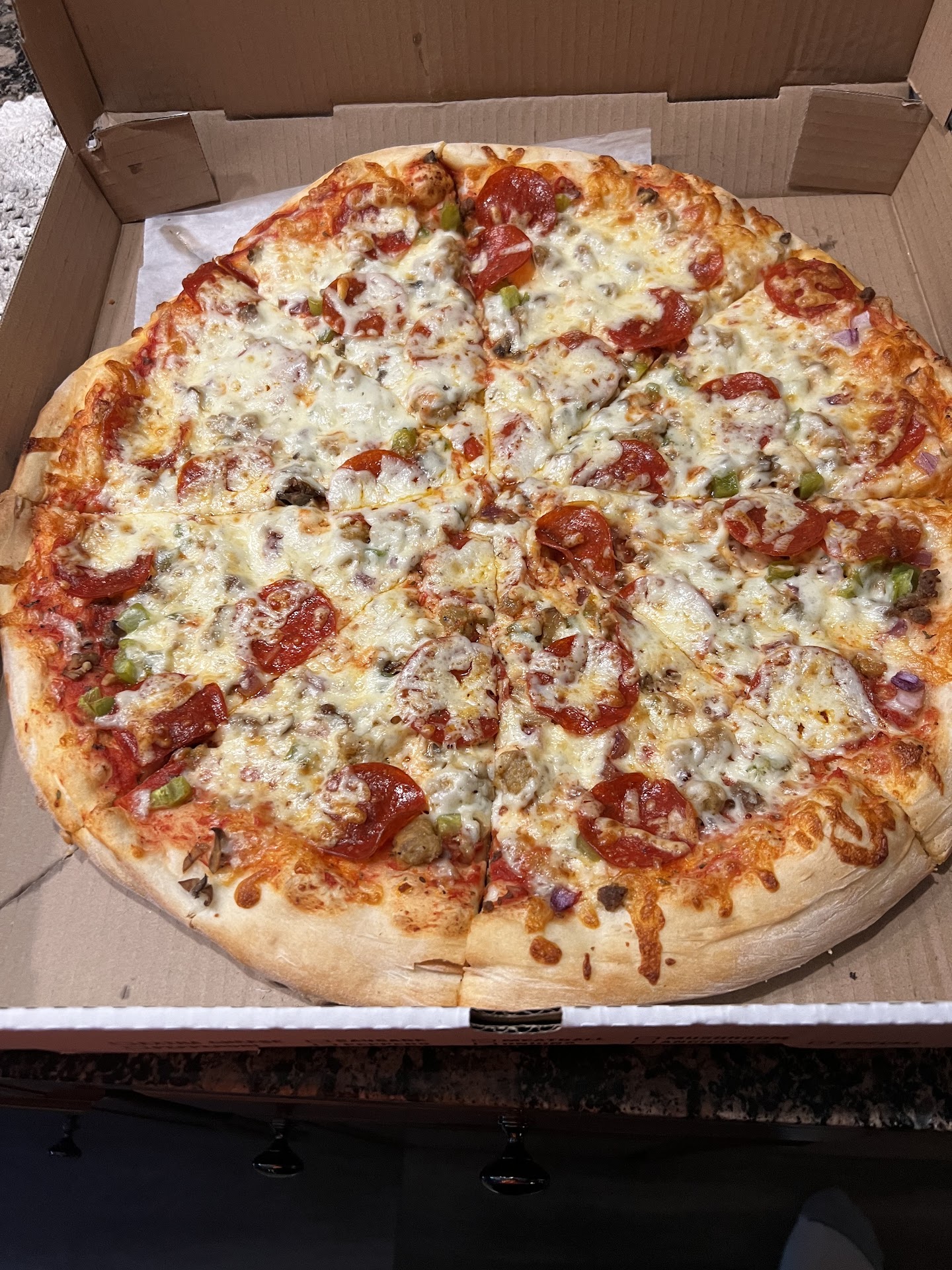 Read moreFirst time I tried to order delivery they called back and said they didn't have a driver that day. Second time I tried to order it went thru the wrong store. So when I went to pick up it wasn't there and I had to wait another 45 minutes. The pretzel tasted burnt and the cheese was ice cold. The garlic knots were great but they forgot my red sauce. The garlic parm wings were spicey, odd. The NY style pizza (tomato and broccoli) was delicious. Third time I ordered they delivered 30 minutes. Pretzel was much better and the cheese was actually warm. However, you don't need so much cheese so they could cut the size and cost. The chicken tender and fries app, the chicken was over cooked and the fries were tossed in spices and not plain, I would have opt for no fries had I known that. Same NY style pizza with tomato and broccoli, was even better this time , less golden which i enjoy. But I did get all my side sauces...