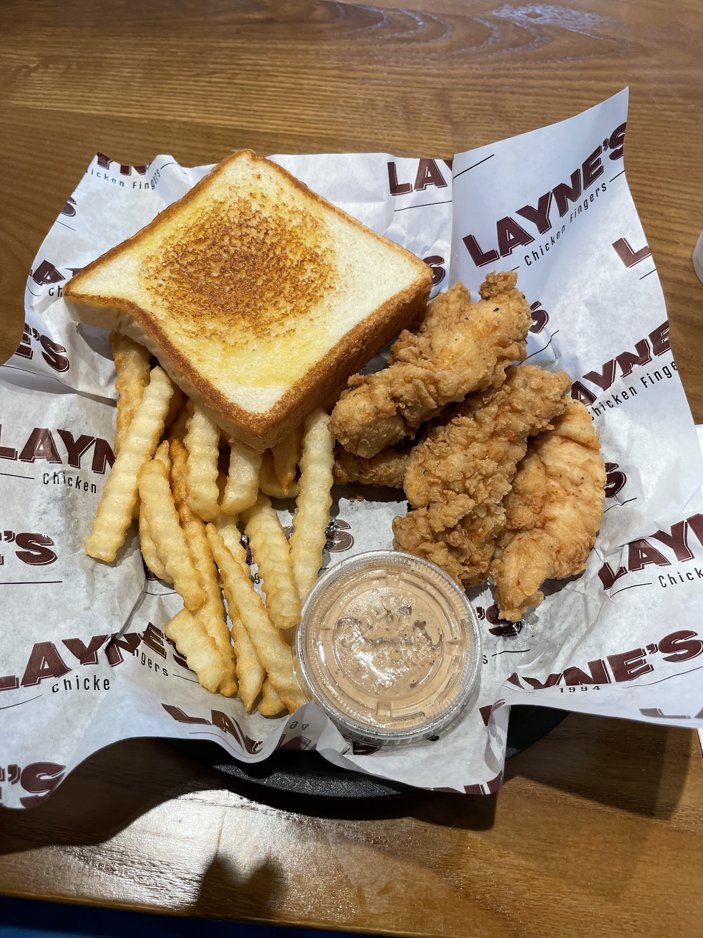 Read moreI've been to College Station many times, and Layne's Chicken Fingers is a place I ALWAYS visit when I'm there. I love seeing Layne's in DFW because they're growing, and it's something to be happy about. Though I have love for Layne's, I was disappointed in the order I received from Layne's Chicken Fingers.