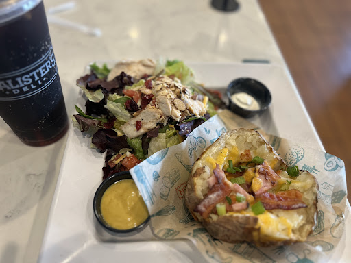 9/20/25 McAlisters was very busy on this Saturday for lunch. The line to order was backed up, but another station was soon opened, making the line move more quickly. Order taker was pleasant, and tried to upsell as I'm sure she's suppose to do. We received the food after a wait that seened a tad long. The extra big spud was two smaller potatoes put together, but I didn't mind that. The potato was very tasty with fresh toppings, but without the advertised spinach on this particular potato. My dining partner got the cup of soup and regular sized porato,, reporting the potato was delicious, but the potato soup was runny and thin, with ok flavor. Everywhere signs indicated a free ice tea with sign up to email, but order taker did not mention this until after our order was placed, prompting this offer could be used on the next order. I needed a to go box for half of the huge potato, and indicated the need to the server. She passed by our table several times with no box. My dining partner got up to get a box after a significant wait and was seen by the server, who immediately remembered and brought the box. No big deal, but these small situations add or detract from the whole...