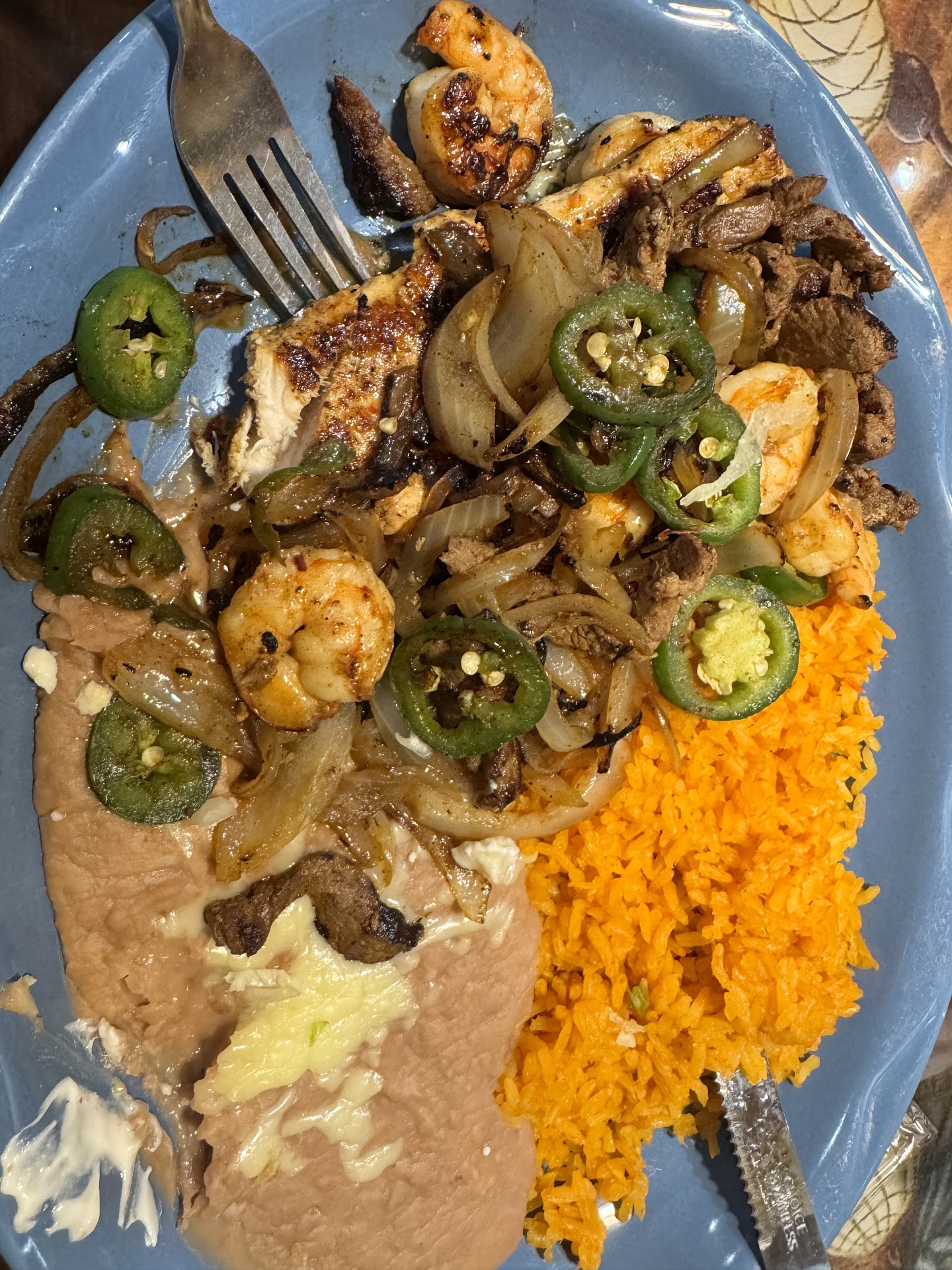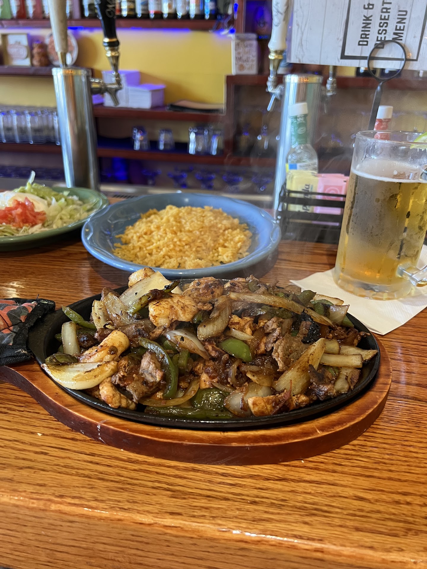 Restaurant is pretty small and parking is very limited in front. You likely need to park across the street and walk over as there are only a handful of spots in front shared by Pueblo Chico and the Honey Baked Ham next door. Walked into the restaurant and no one was at the front or at the bar to greet and seat us so after waiting for five minutes we just walked over to an empty table to sit down. After getting situated and going to the restroom eventually Esther came to take our order probably about 15-20 minutes after we first walked inside. Food came out quickly and was fresh but everything had just a little too much salt, especially dishes with grilled chicken. Portions were large and very generous for a reasonable price. Food was mostly fine, but nothing blew our socks off taste ways. The fried ice cream had a strange aftertaste with the waffle bowl used. We could not tell if it was an expired waffle bowl or maybe it was produced with some type of corn bread product, but the waffle bowl did not taste like anything we had tasted before with fried ice cream. Overall the food seemed solid enough for a Mexican restaurant, was very reasonably priced, and had huge portions so it is a fine stop if in the area. The art on the tables and walls is excellent with one painting on the wall of a warrior holding a fainted lady being particularly exceptionally Epic so bonus points...