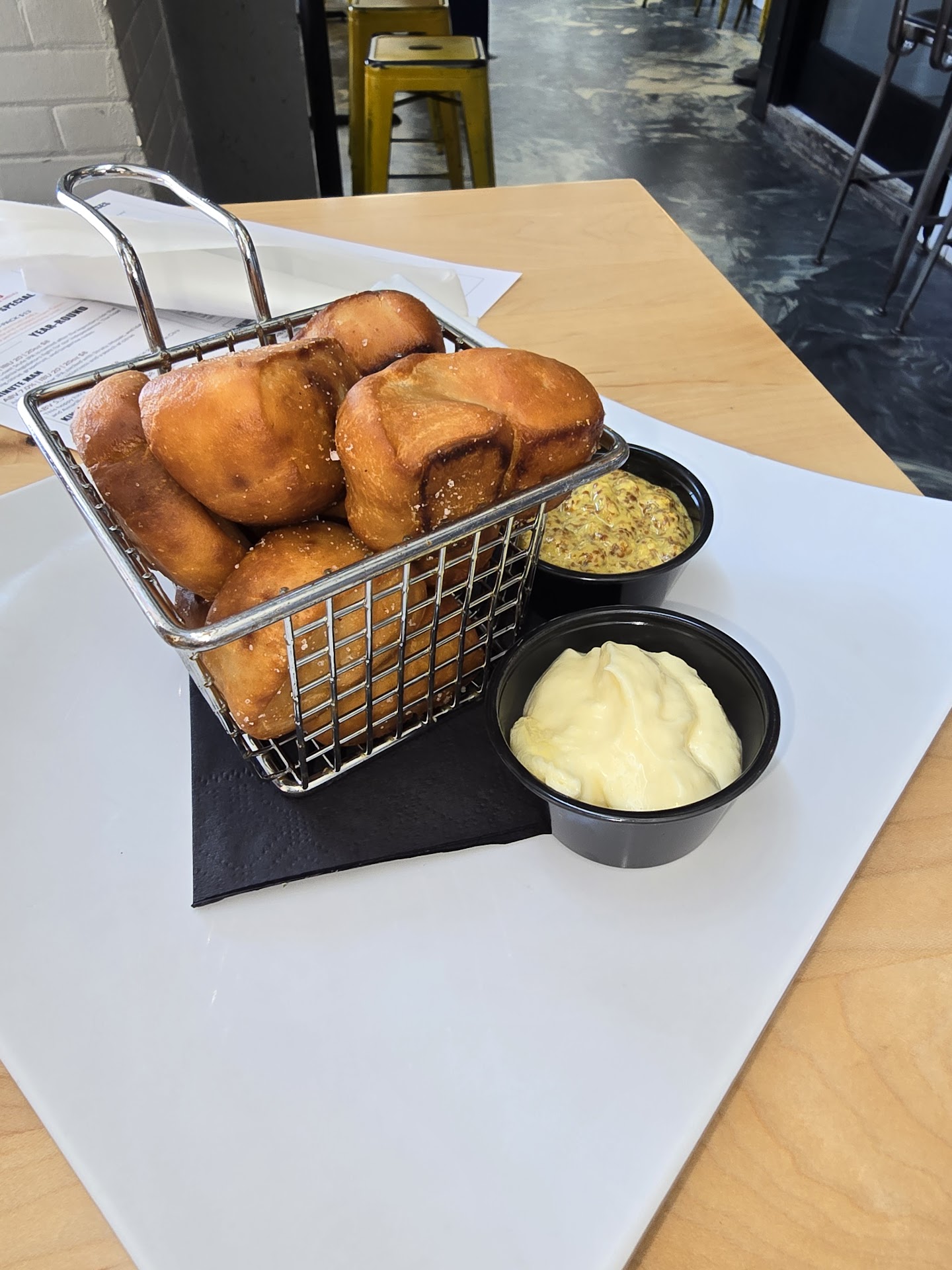 Read moreI was in town, just getting there and hungry, saw Three Notch’d and checked out the menu. Though it was Sunday around 1PM, still brunch time for them, they had a very nice menu of lunch type food too. I opted for their pretzel bites to start. What drew me to them was the description of the mustard and beer cheese that came with them.