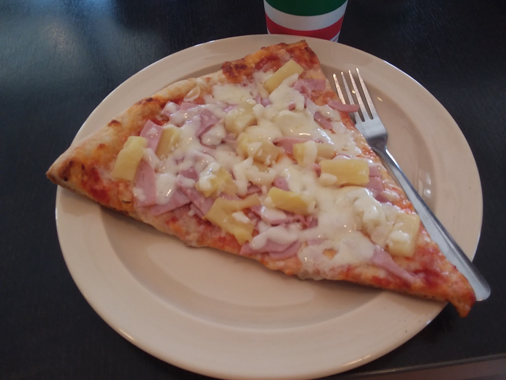 I got a slice of the Hawaiian and it's so good. The bottom of the crust was crispy and they used really chunky pineapple and ham pieces with a great covering of mozzarella. One of the women working behind the counter was kind enough to get me a knife when she saw me struggling to eat the pizza (it was still too hot to pick up but that wasn't gonna stop me from trying to eat it).