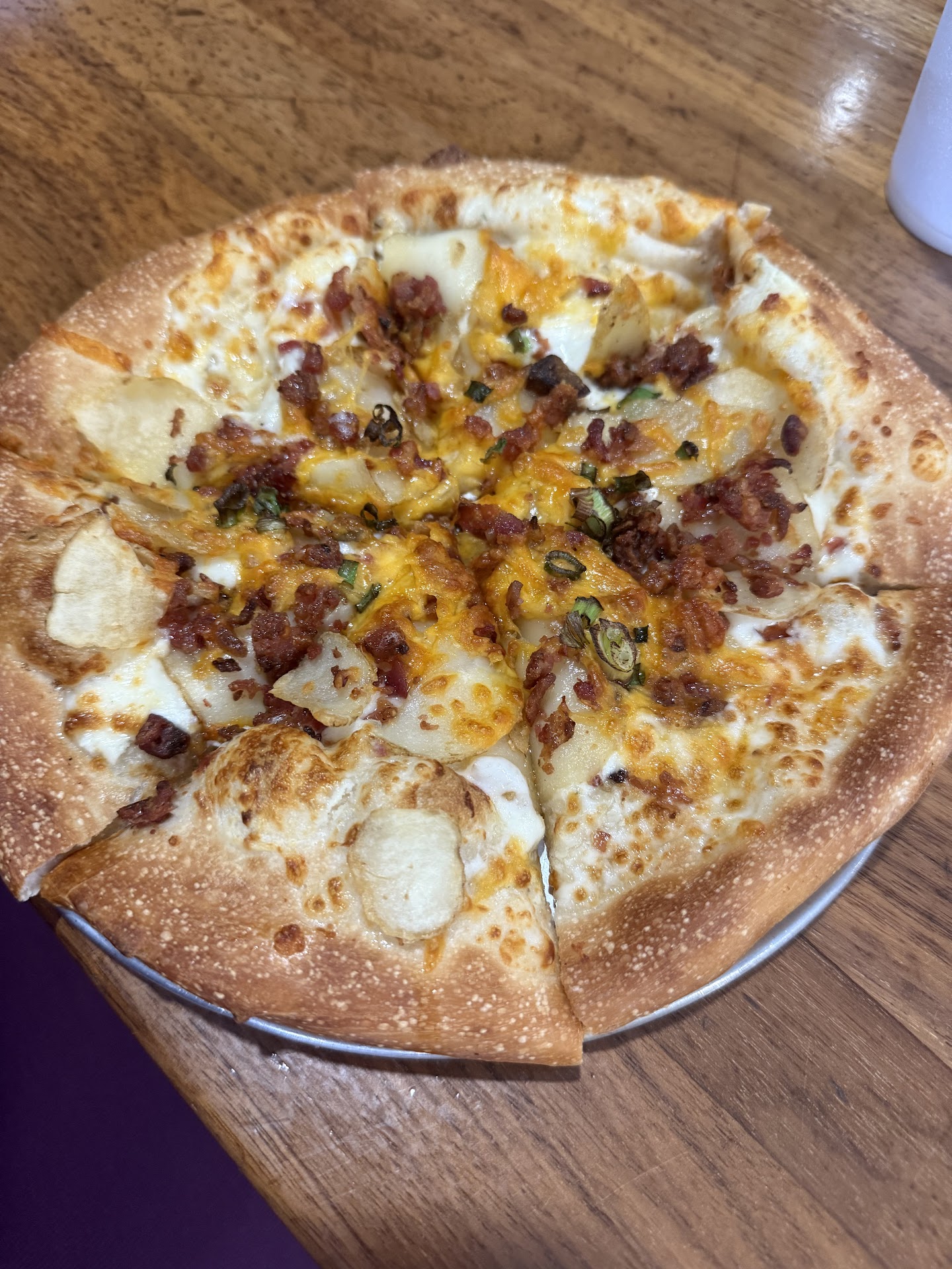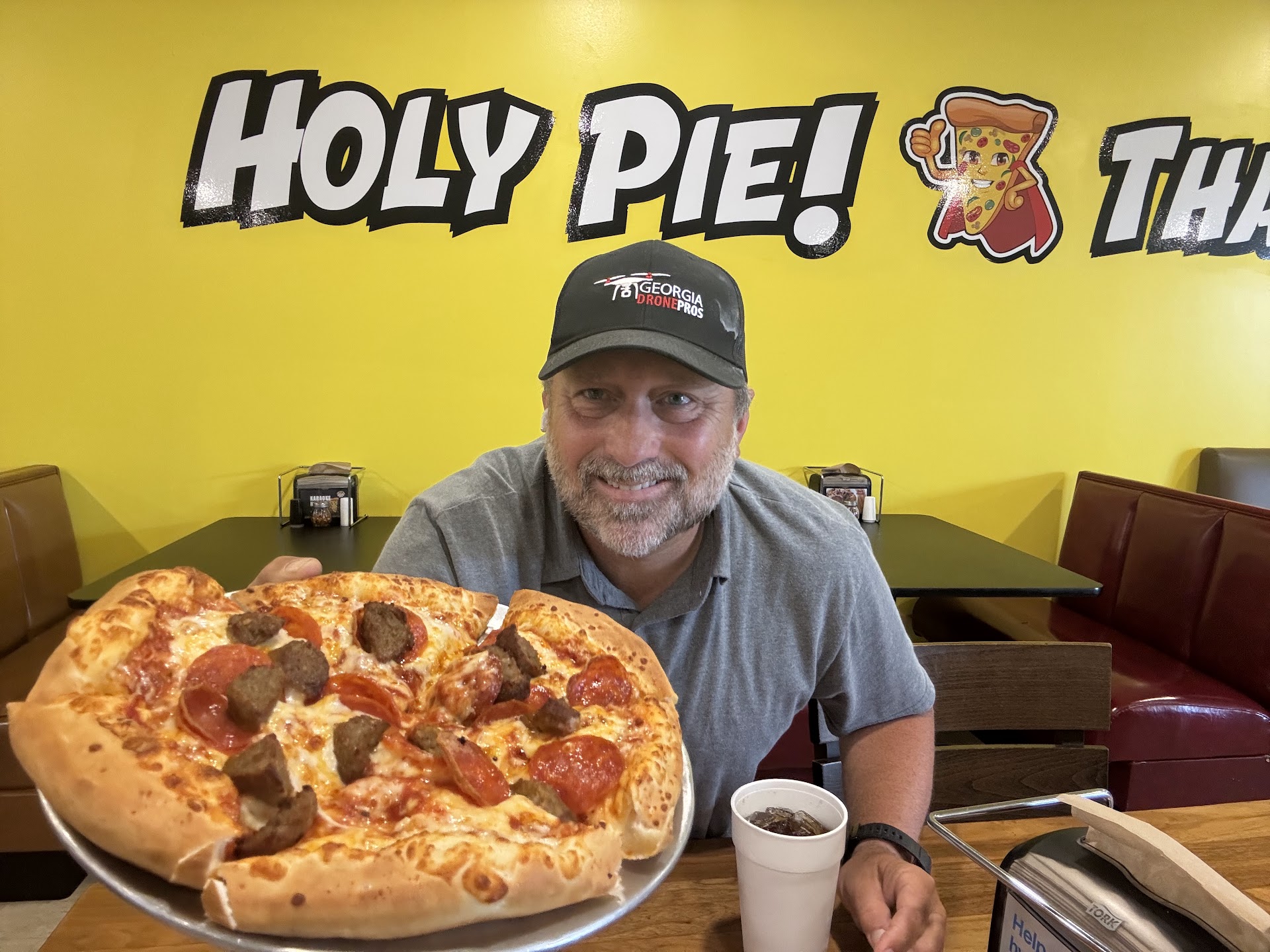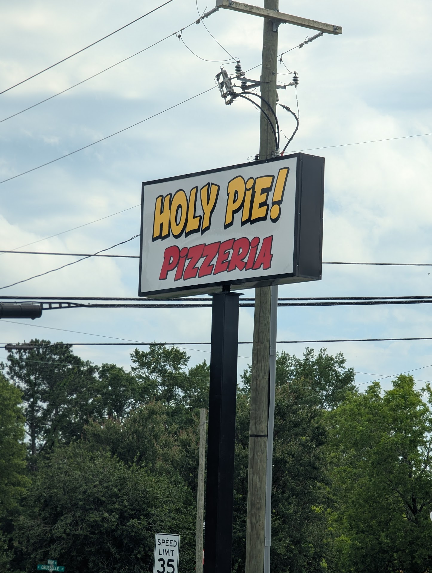 Stopped here after grabbing a couple Geocaches in Knoxville and Roberta. Saw this restaurant, went in totally unplanned. The meatball.sub was good. Toasted and warm. It was 138 degrees when it was delivered. The loaded potato pizza was 179 degrees when it was delivered to the table. The staff was super friendly. The restaurant was clean. The two bathrooms in the back are not labeled but we're clean. There is a birthday party section and a couple TVs on the wall with sports playing. The music playing is at a good volume and is Christian music, hence the restaurant name "Holy Pie!.". I recommend stopping here if you are in Roberta and check out the town monuments and murals here. It's a lovely town. Thursday night is karaoke 🎤 night... It gets pretty packed in here and the noise level is pretty high...so be warned if loud areas...